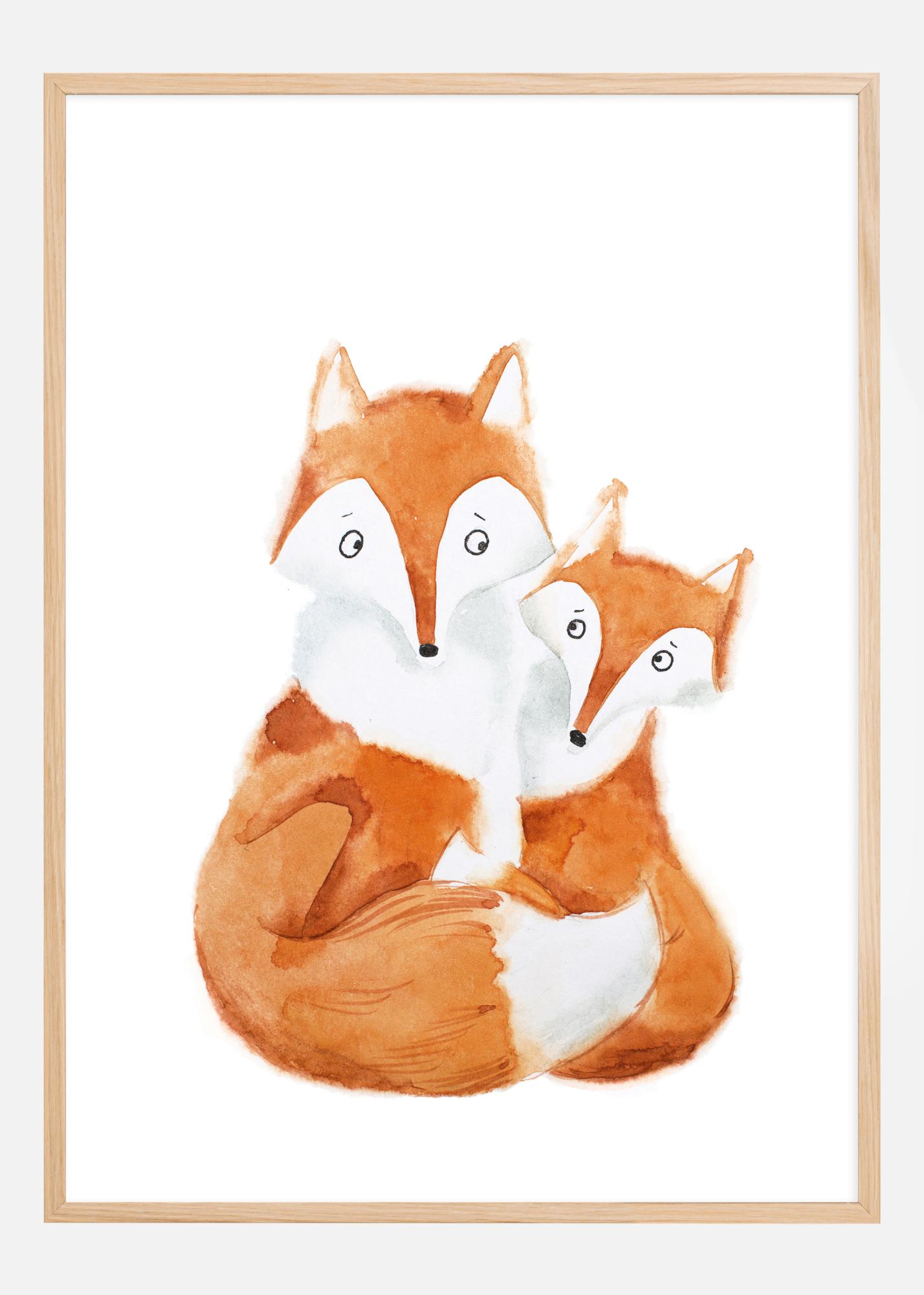 Introduce una sensación de calidez y cercanía familiar con este adorable póster de familia de zorros. Muestra a un gran zorro abrazando a su cría, una imagen que irradia amor y seguridad. Los suaves tonos terrosos de marrón óxido y blanco en la ilustración brindan un efecto natural y calmante, perfecto para crear una atmósfera acogedora en una habitación infantil o cualquier otra parte del hogar donde se quiera resaltar calidez y cuidado.