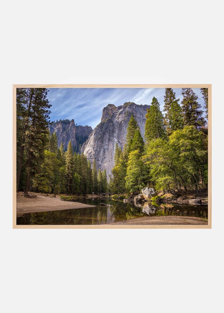 Impresión con acantilados altos y un bosque tranquilo que se refleja en una superficie de agua tranquila. Un silencio elocuente que crea un paisaje tranquilo. Junto con un marco de material natural, el cuadro se adapta a todo tipo de decoraciones y esquemas de color. Cuelgue la fotografía junto con otras imágenes de la naturaleza o Elige un tamaño más grande para obtener un efecto como cuadro único.