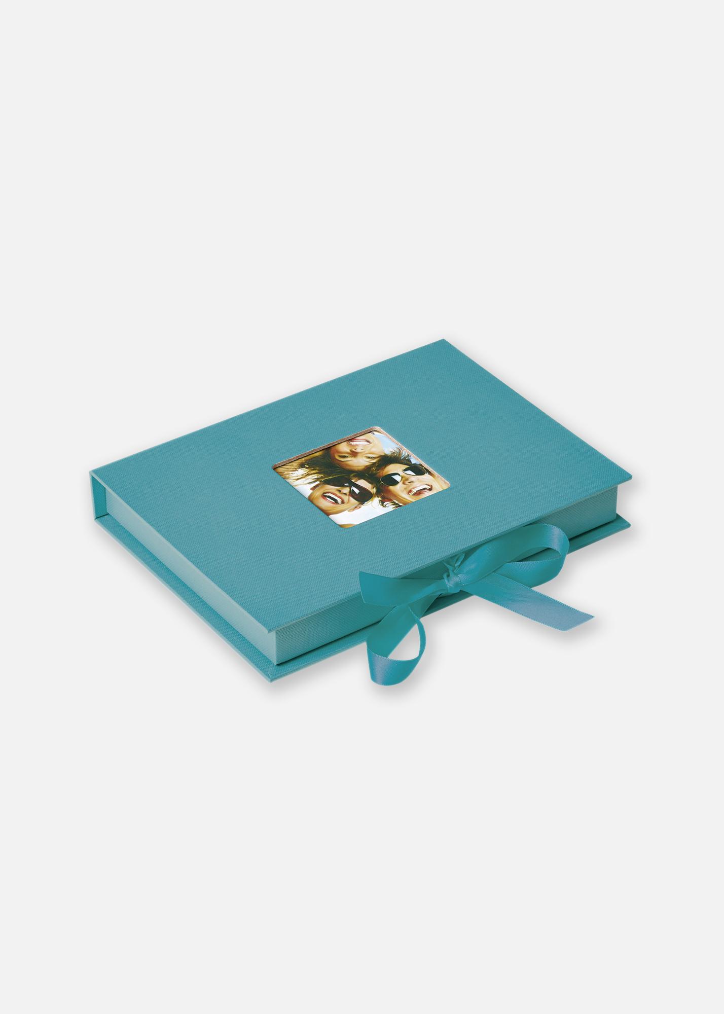 Bonita caja de fotos con un diseño moderno en un hermoso color verde que puede contener 70 fotos de hasta 13x18 cm. En la parte superior de la caja hay espacio para una imagen propia (6x6 cm) para que puedas personalizar fácilmente tu caja de fotos.
