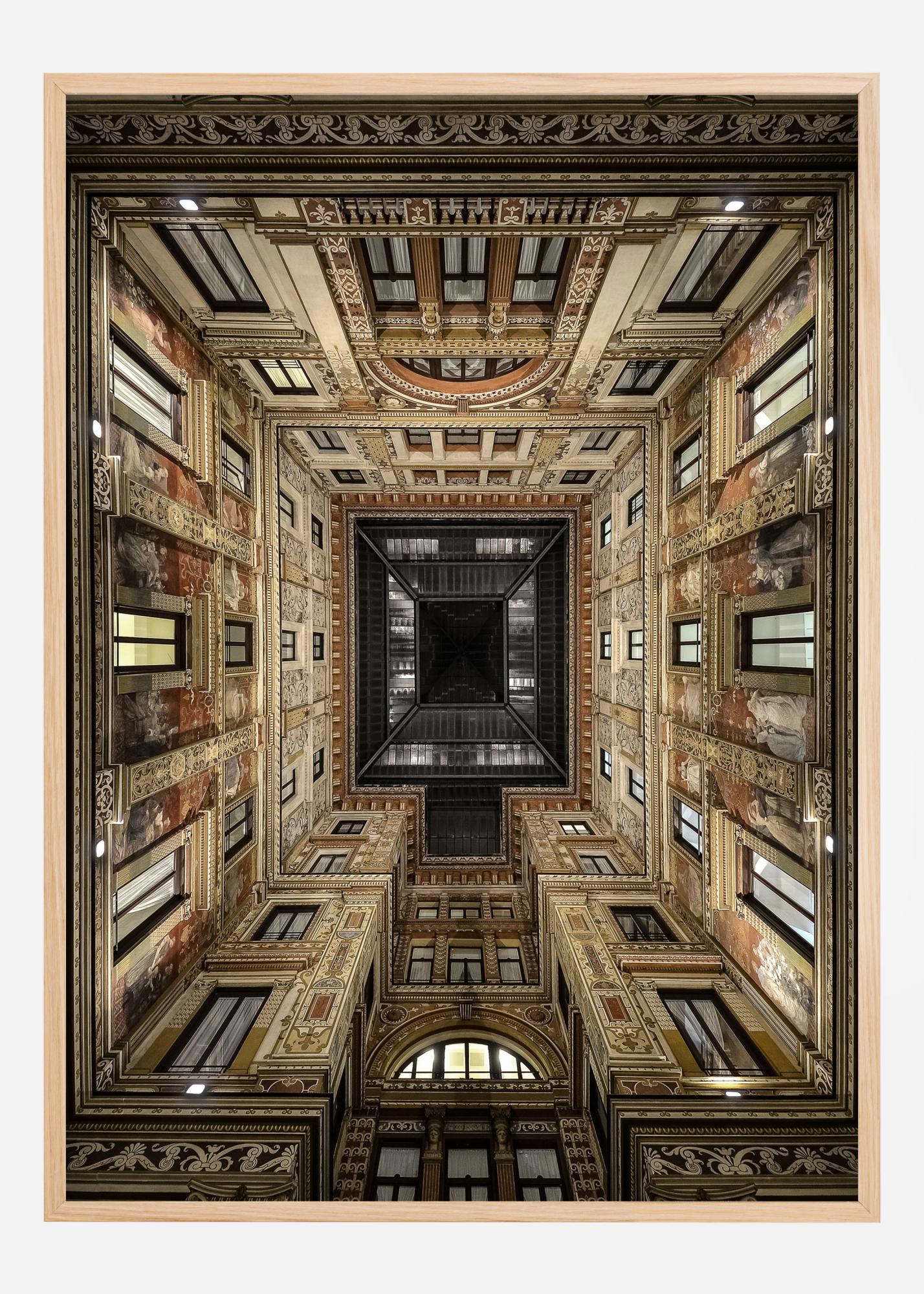 Un póster con la Galería Sciarra y su arquitectura fascinante. Imagínate que estás dentro del edificio, mirando hacia arriba en el techo y viendo la fantástico variedad de ventanas y diseños complicados. Lleva este viaje contigo a tu hogar.