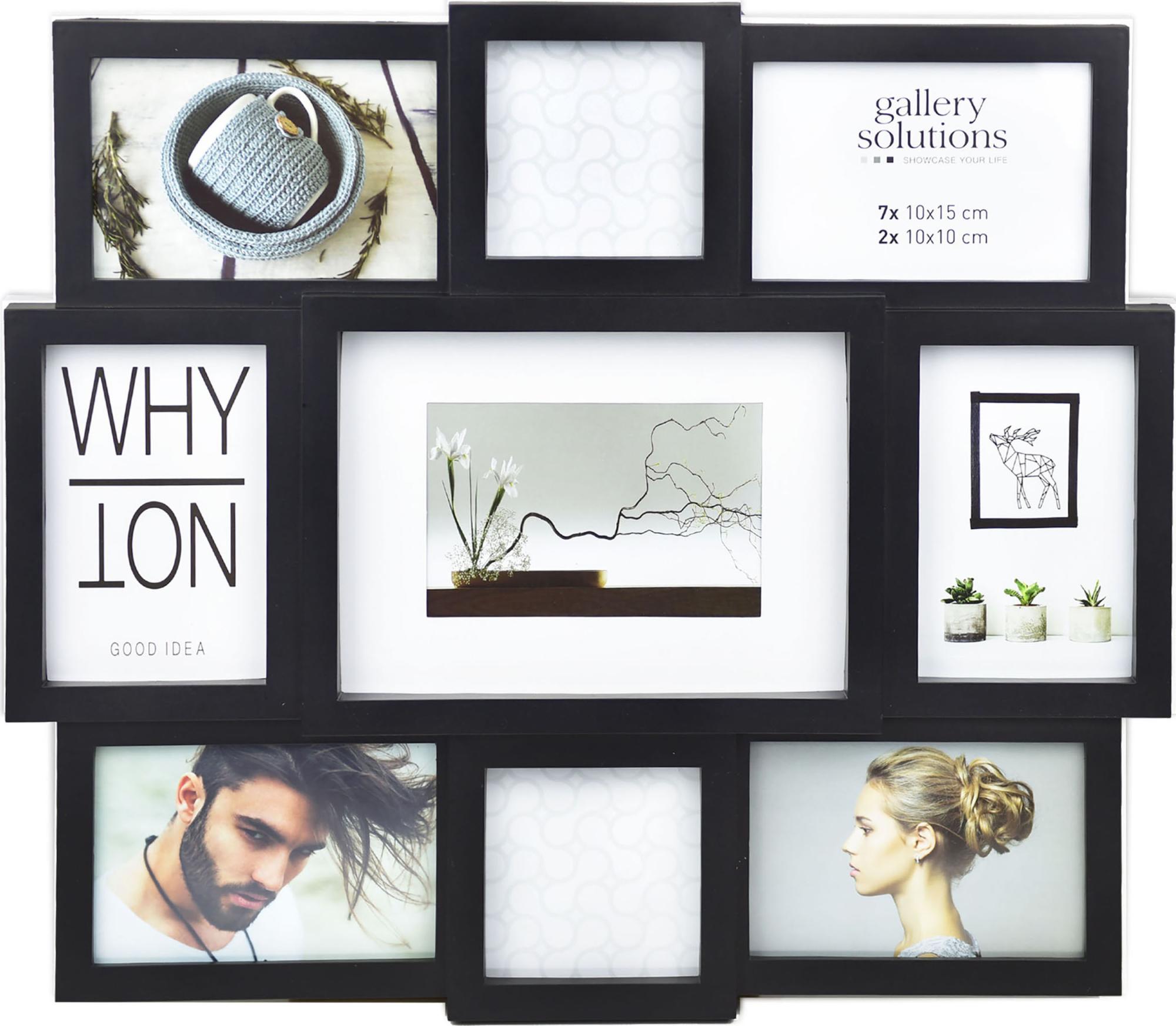 marco collage negro moderno con espacio para 9 fotos. ¡Perfecto cuando quieres crear un bonito collage de fotos!
