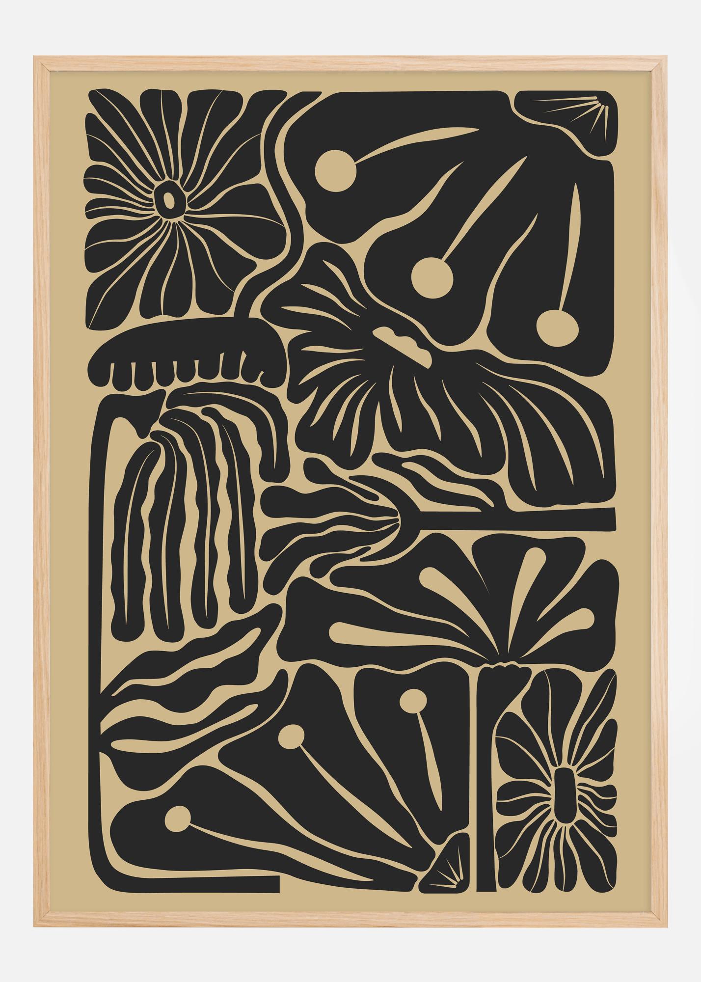 Este póster elegante brinda una impresión moderna y sencilla, perfecta para el decorador consciente de las tendencias. El motivo muestra una serie de formas y líneas abstractas que recuerdan a flores y hojas en un patrón orgánico. La ejecución monocromática en detalles negros audaces sobre un fondo beige crea un fuerte contraste visual que captura la mirada. Una obra que se adapta perfectamente a un estilo de decoración minimalista o escandinavo y añade una sensación de naturaleza sin ocupar demasiado espacio visualmente.