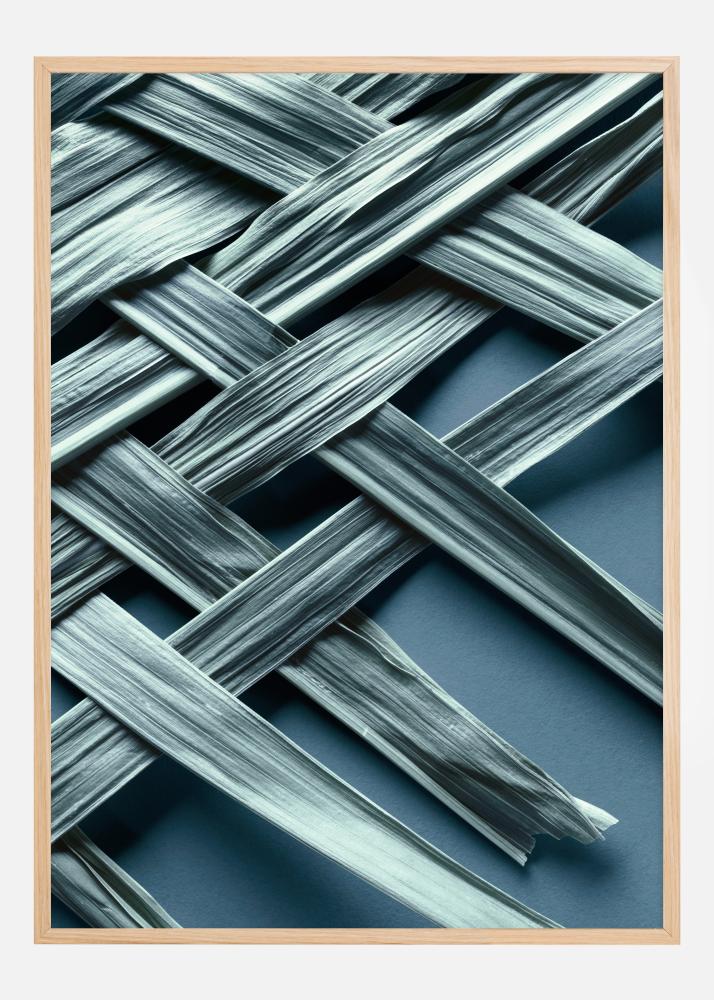 Este póster contemporáneo presenta un motivo fascinante y abstracto de líneas cruzadas con un tono suave azul verdoso. La composición minuciosamente dispuesta de líneas crea un patrón dinámico que brinda una sensación de movimiento y textura, lo que hace que la imagen sea tanto visualmente interesante como estimulante.