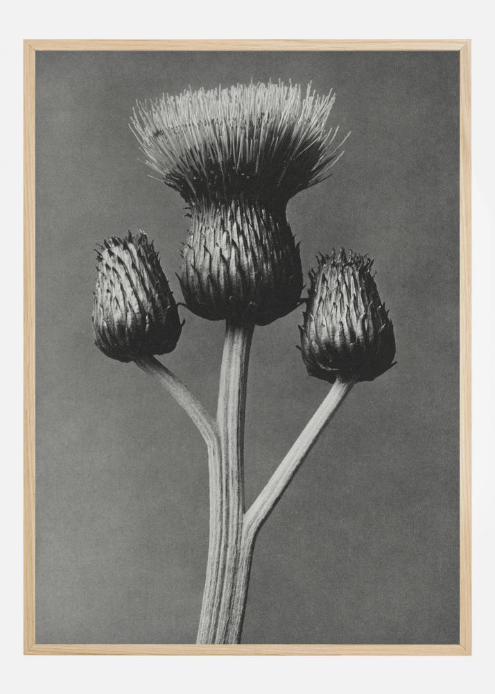 Una impresión impactante con una flor gris llamada cardo. Esta impresión sencillo pero maravillosa, que se muestra sobre un fondo gris, crea una sensación de soledad. Con la luz natural que ilumina suavemente la flor, este es un póster perfecto para todos los amantes de las flores.