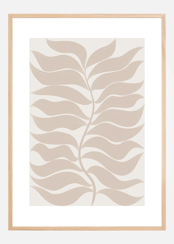 Un póster botánico con hojas. Esta delicada pintura muestra una imagen suave y sencilla de once hojas a cada lado de un tallo. Con un fondo blanco, esta es la impresión perfecta para todos los amantes de la naturaleza o aquellos interesados en las hojas.