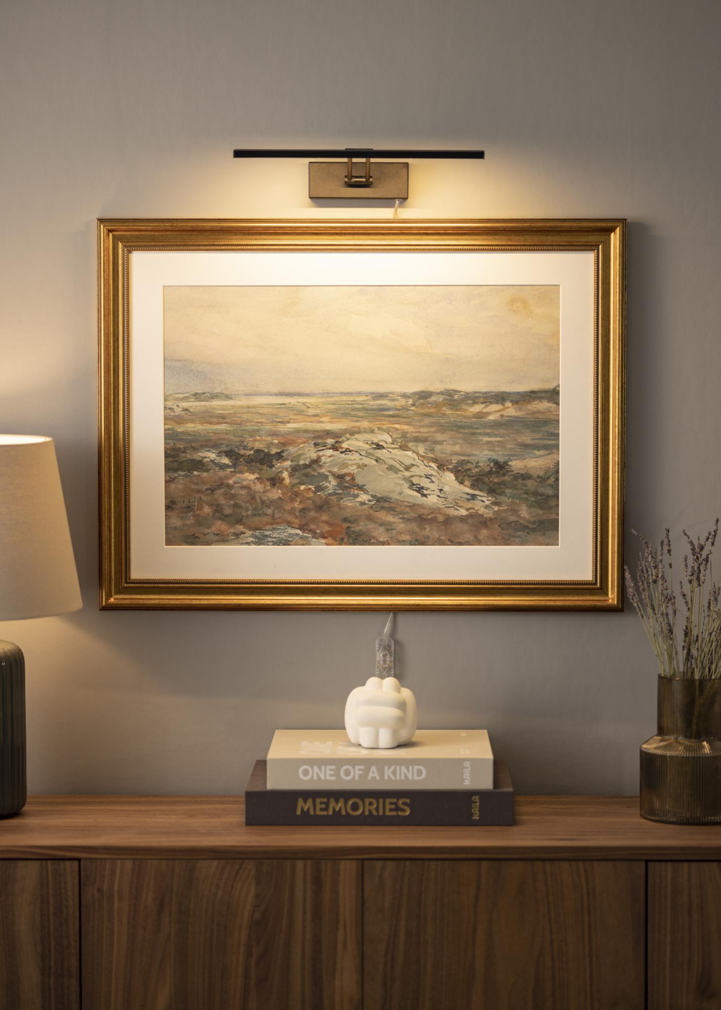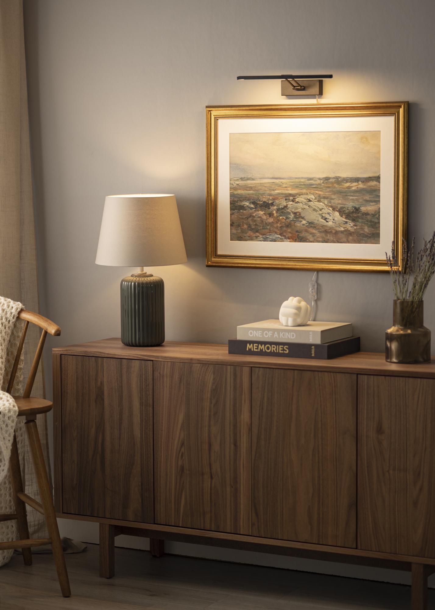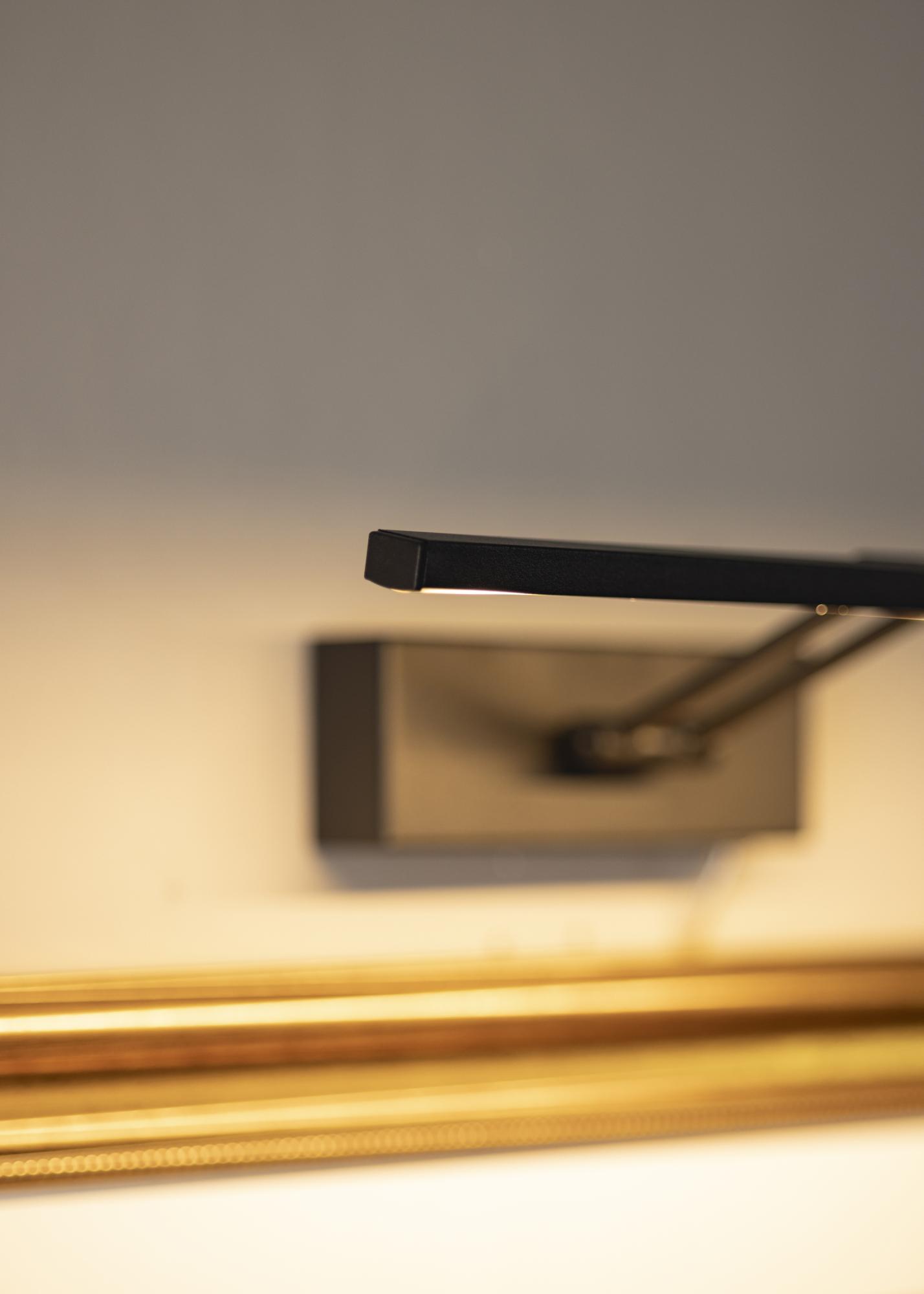 Iluminación de cuadros en un diseño moderno sueco que se adapta a cuadros con un ancho de 60-100 cm. El accesorio tiene una altura de 5 cm y una longitud de 37 cm con una distancia a la pared de 20 cm. Con su potente iluminación LED de 720 lúmenes, obtendrás una iluminación agradable incluso en cuadros más grandes.