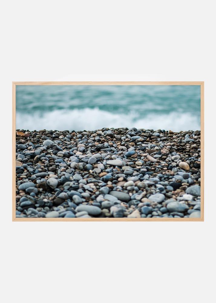 Escucha el sonido de las olas del mar en este póster con una hermosa playa de piedras en primer plano. La poca profundidad de campo crea una imagen interesante que atrae la atención. ¿Puedes encontrar algún trozo de vidrio redondeado entre las piedras? La paleta de colores gris-azulada queda bien con un marco estrecho en una pared clara, preferiblemente con accesorios marinos.