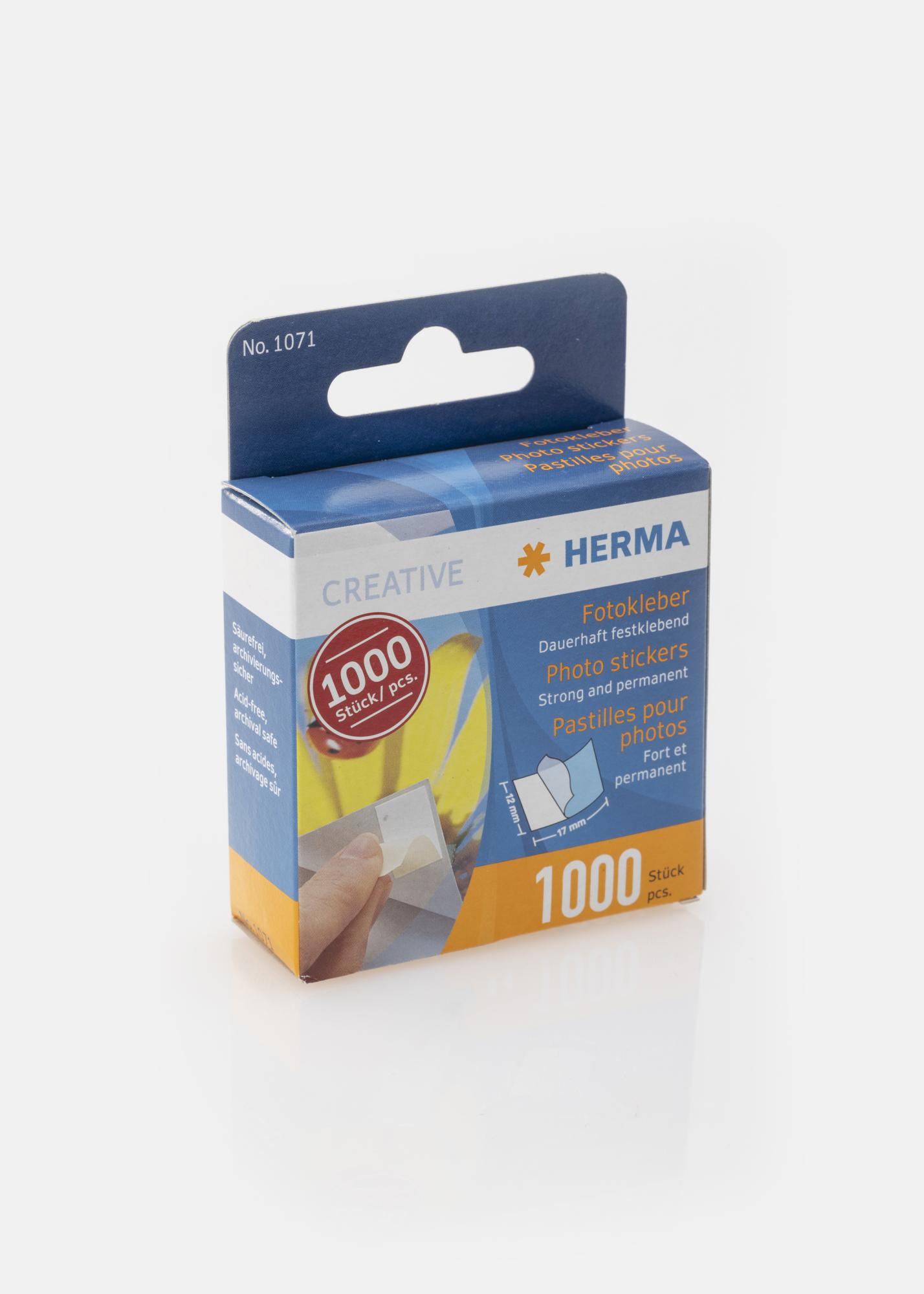 Las pegatinas de fotos Herma son adhesivas por ambos lados y se utilizan para montar fotos de forma permanente. El producto es libre de ácido y seguro para tus fotos. En el paquete hay un total de 1000 pegatinas de fotos.
