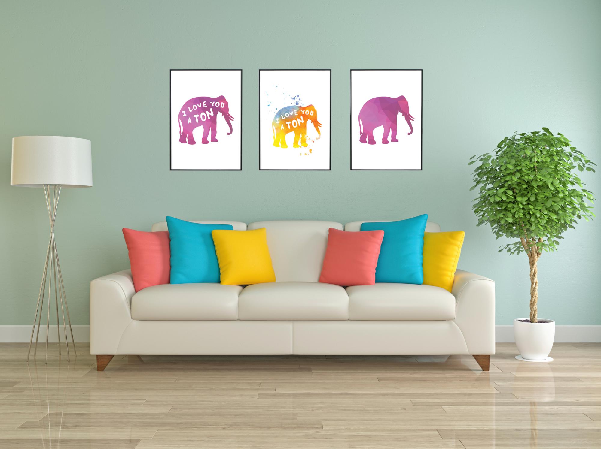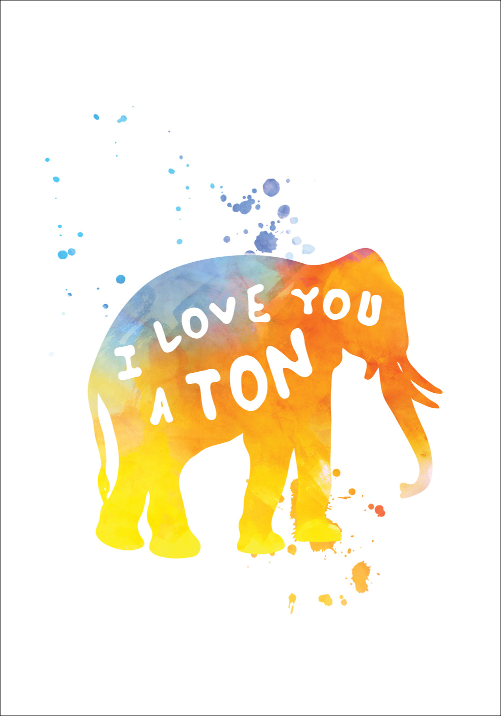 Póster amoroso y divertido que es adecuado para regalar a aquellos que aman los elefantes y quieren tener un toque de color en la pared. El elefante parece estar impreso con una abundancia de colores en papel blanco, con el texto en una fuente blanca con una sensación de escritura a mano. El póster es bonito para enmarcar con un marco de un solo color que resalte los tonos en el motivo y que se adapte bien a la decoración del resto de la habitación donde se colgará el cuadro.
