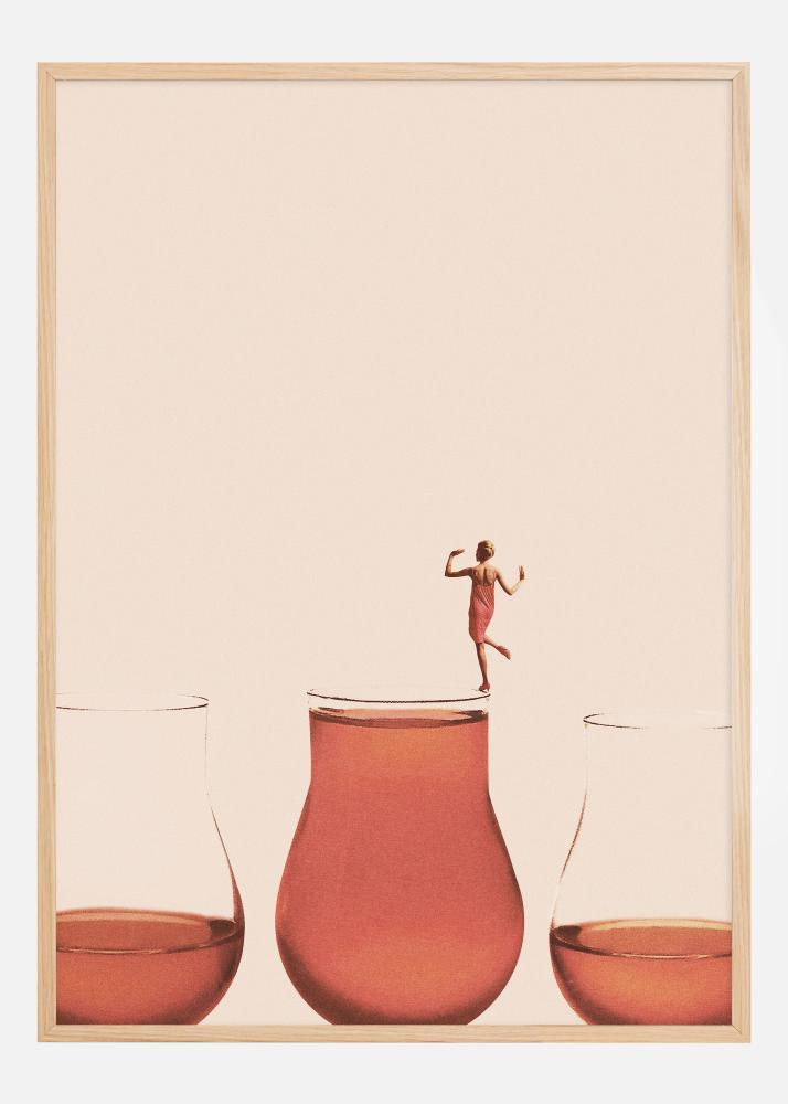 El esquema de colores cálidos de la imagen, caracterizado por tonos de rosa, rojo y marrón, crea una sensación de confort e intimidad, lo que la hace ideal para entornos donde el calor y la bienvenida son elementos clave. La copa desbordante, con su abundante y seductor contenido, ofrece un contraste visual con la copa vacía, evocando una sensación de elección y posibilidad. Este póster cuidadosamente diseñado es un maravilloso detalle de decoración ideal para comedores, bodegas o otros espacios de reunión donde se celebra lo bueno de la vida.