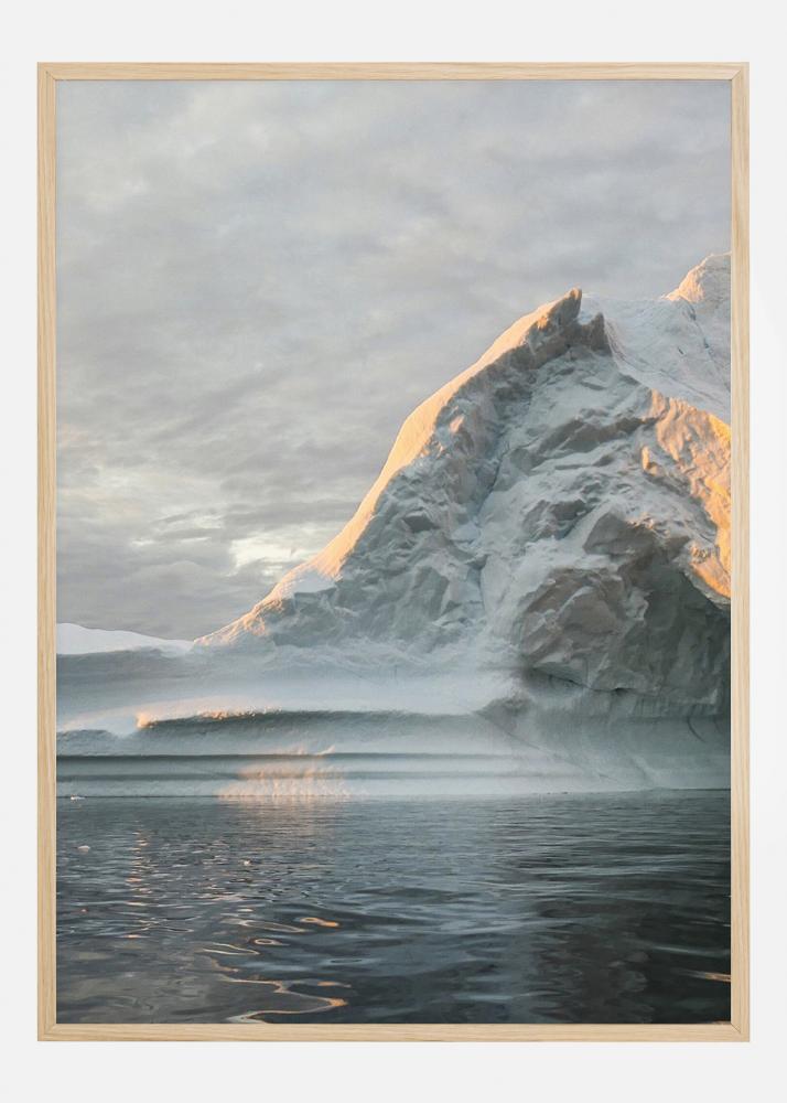 Este fascinante póster refleja un iceberg en el profundo y frío mar contra un cielo gris y nublado. La pequeña montaña cubierta de nieve está parcialmente iluminada por la luz del sol. El mar de color azul cristalino se agita suavemente en primer plano, creando una imagen tranquila. Una imagen perfecta para colgar sobre la chimenea de tu cabaña de invierno.