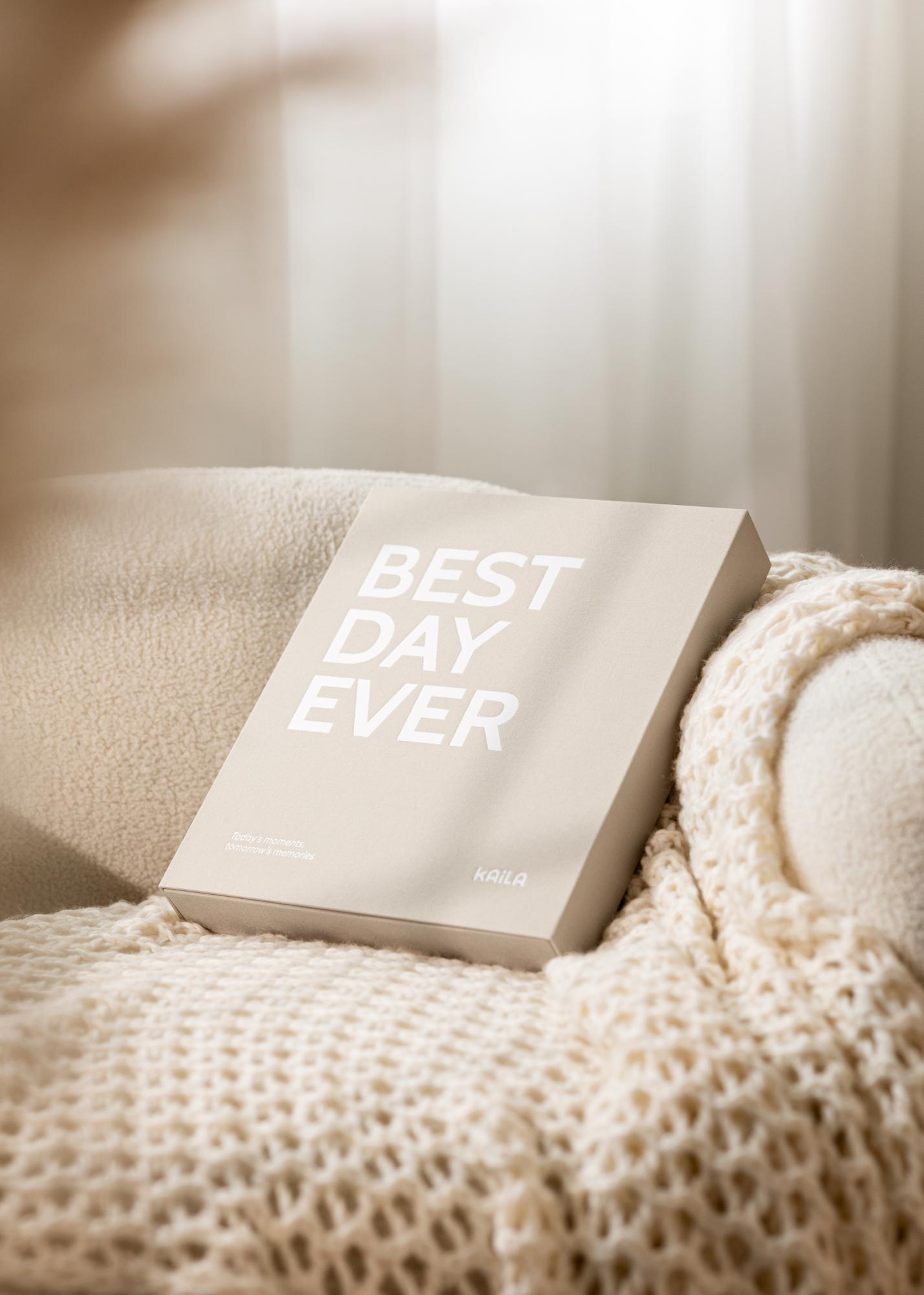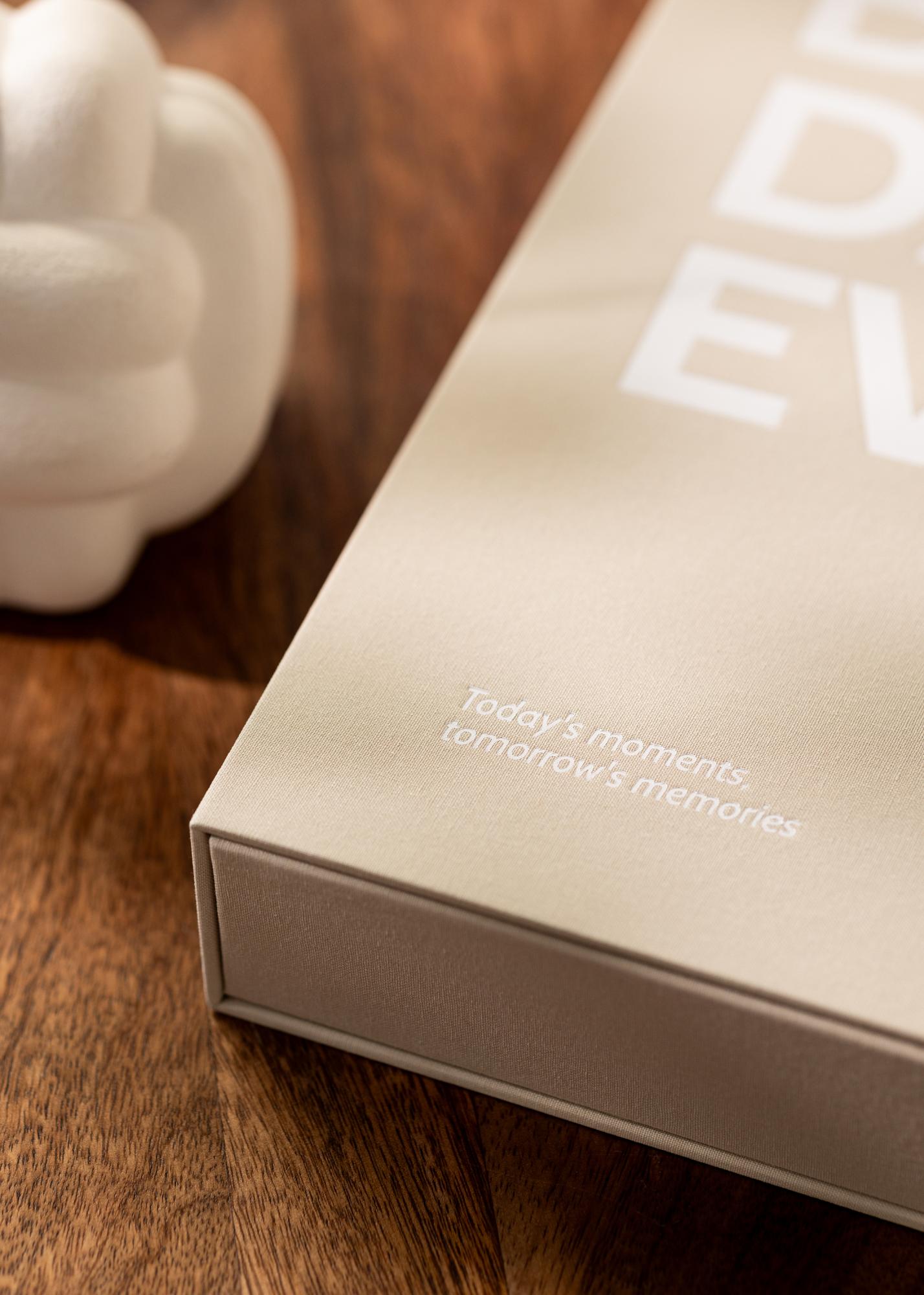 Descubre KAILA BEST DAY EVER Creme - un álbum de fotos elegante y estilizado, diseñado para ser un hermoso elemento decorativo en tu mesa de café. Con sus cubiertas beige y páginas negras, este álbum se convierte en un llamativo libro de mesa que puedes mostrar con orgullo en tu hogar.