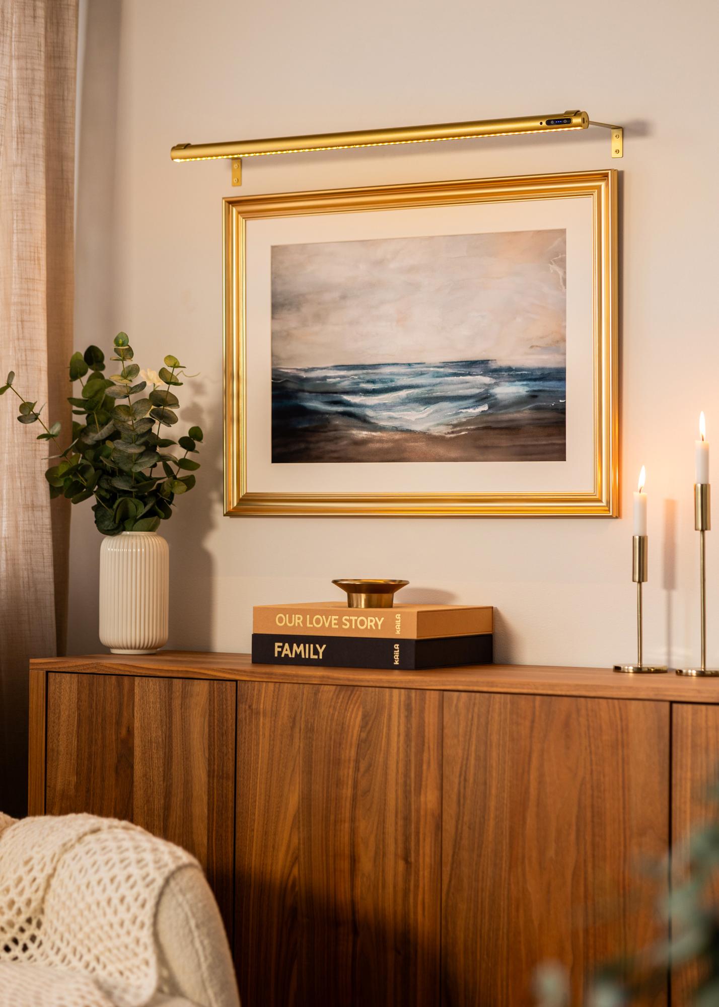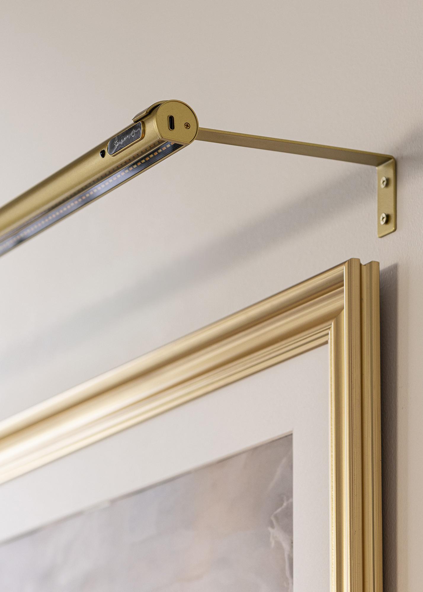 Destaca tus obras de arte con KAILA Brilliance: una iluminación de cuadros elegante y a batería que ofrece una iluminación perfecta para tu cuadro sin cables. Gracias a su diseño sin cables, se puede colocar fácilmente en cualquier lugar sin tener que preocuparse por tomas de corriente. Con su elegante acabado dorado y brazo ajustable, difunde una luz suave y uniforme sobre tu cuadro, destacando los detalles y colores de manera hermosa. Su fácil montaje y uso fluido hacen de esta iluminación de cuadro una excelente opción tanto para el hogar como para la galería.