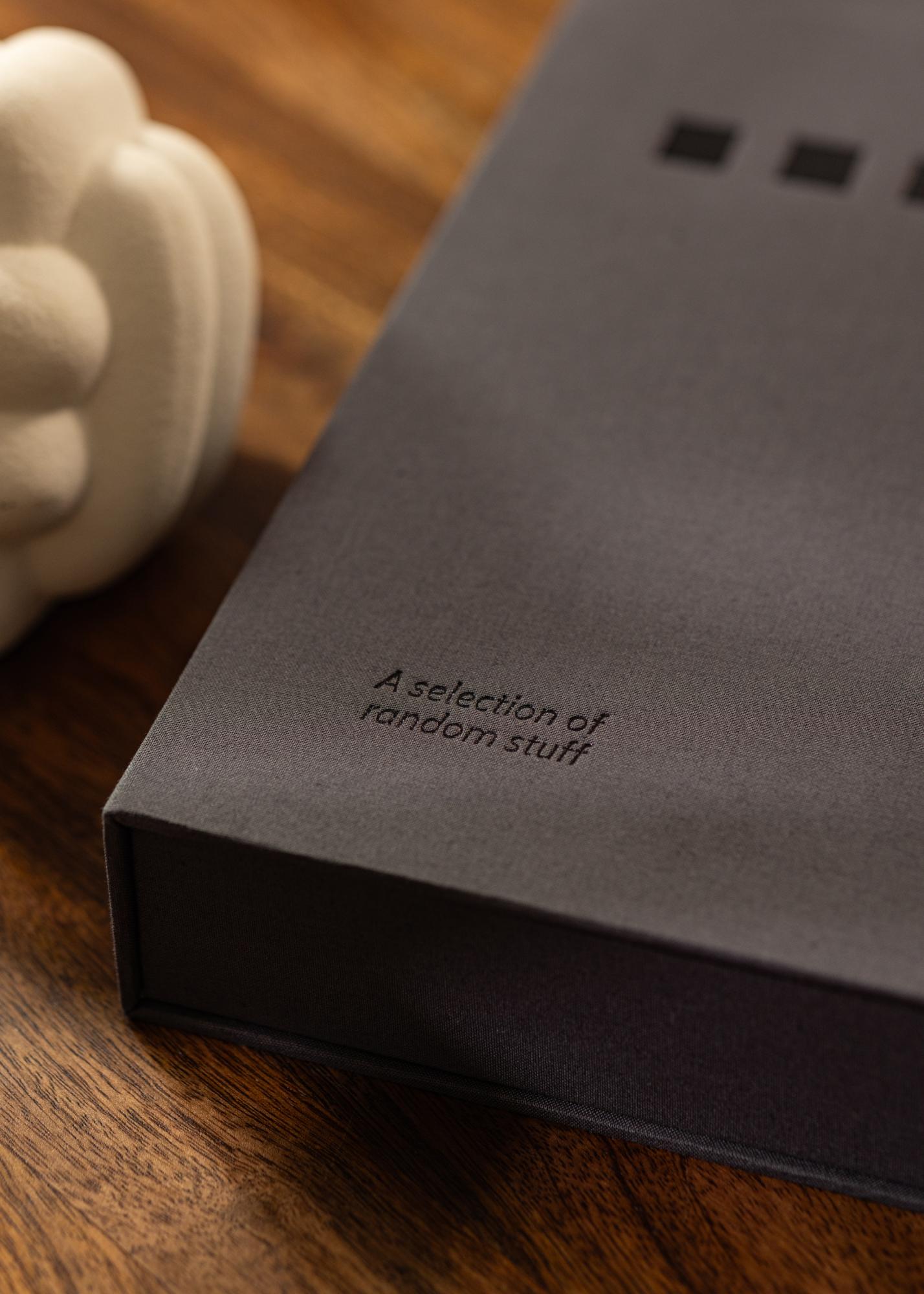 Cuando las palabras son superfluas y las imágenes y los recuerdos pueden hablar por sí mismos, entonces puedes conseguir un álbum de fotos con el título: ... Este álbum de fotos Coffee Table tiene un diseño diferente y jovialidad, pero al mismo tiempo muy elegante, que lo convierte tanto en un elegante y moderno detalle de decoración como en un práctico álbum de fotos. El álbum de fotos está elegantemente vestido con tela negra y el título sin palabras está impreso brillantemente en la portada del álbum. En la esquina inferior izquierda del álbum también encontrarás una impresión con el subtítulo Una selección de cosas aleatorias.