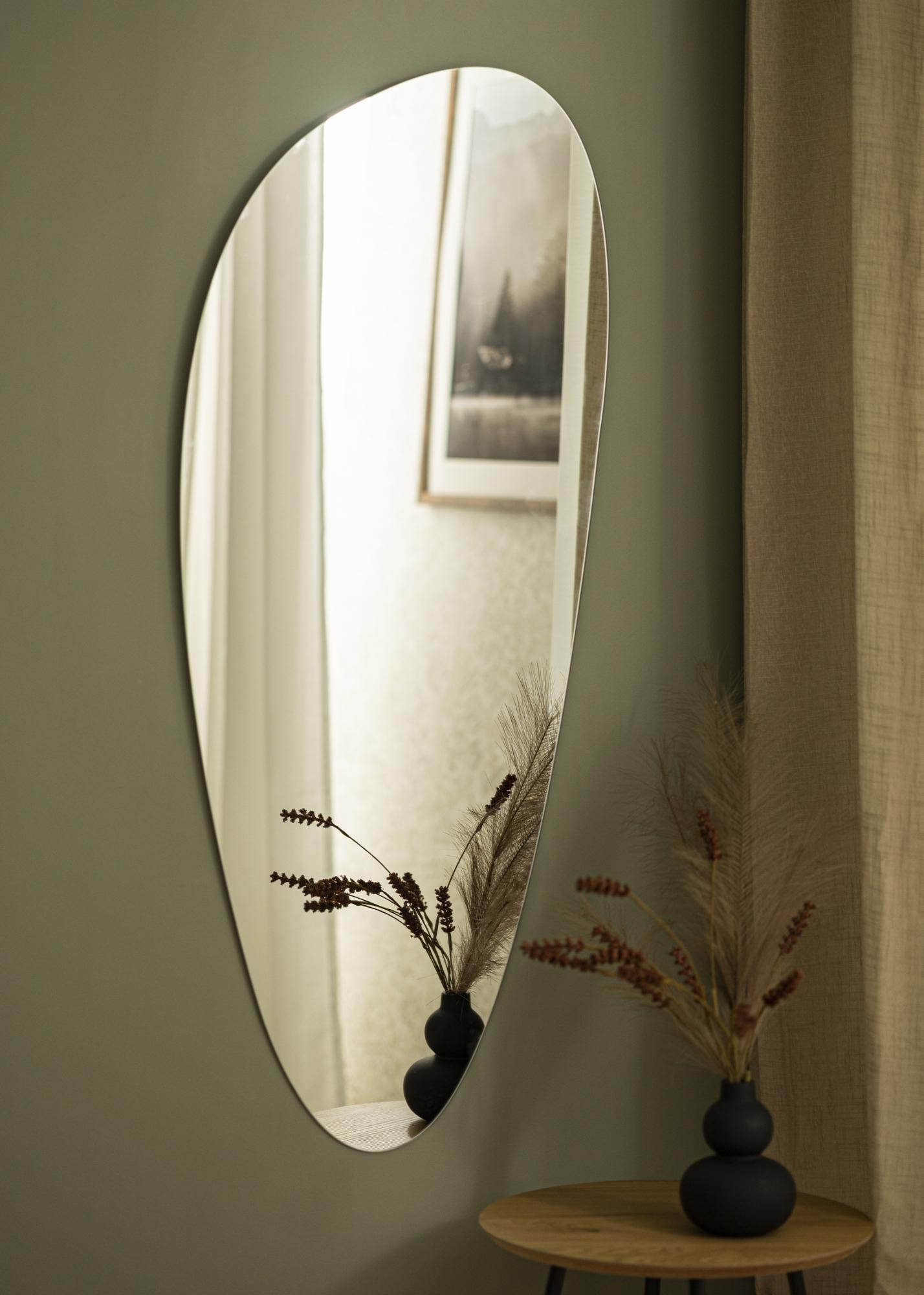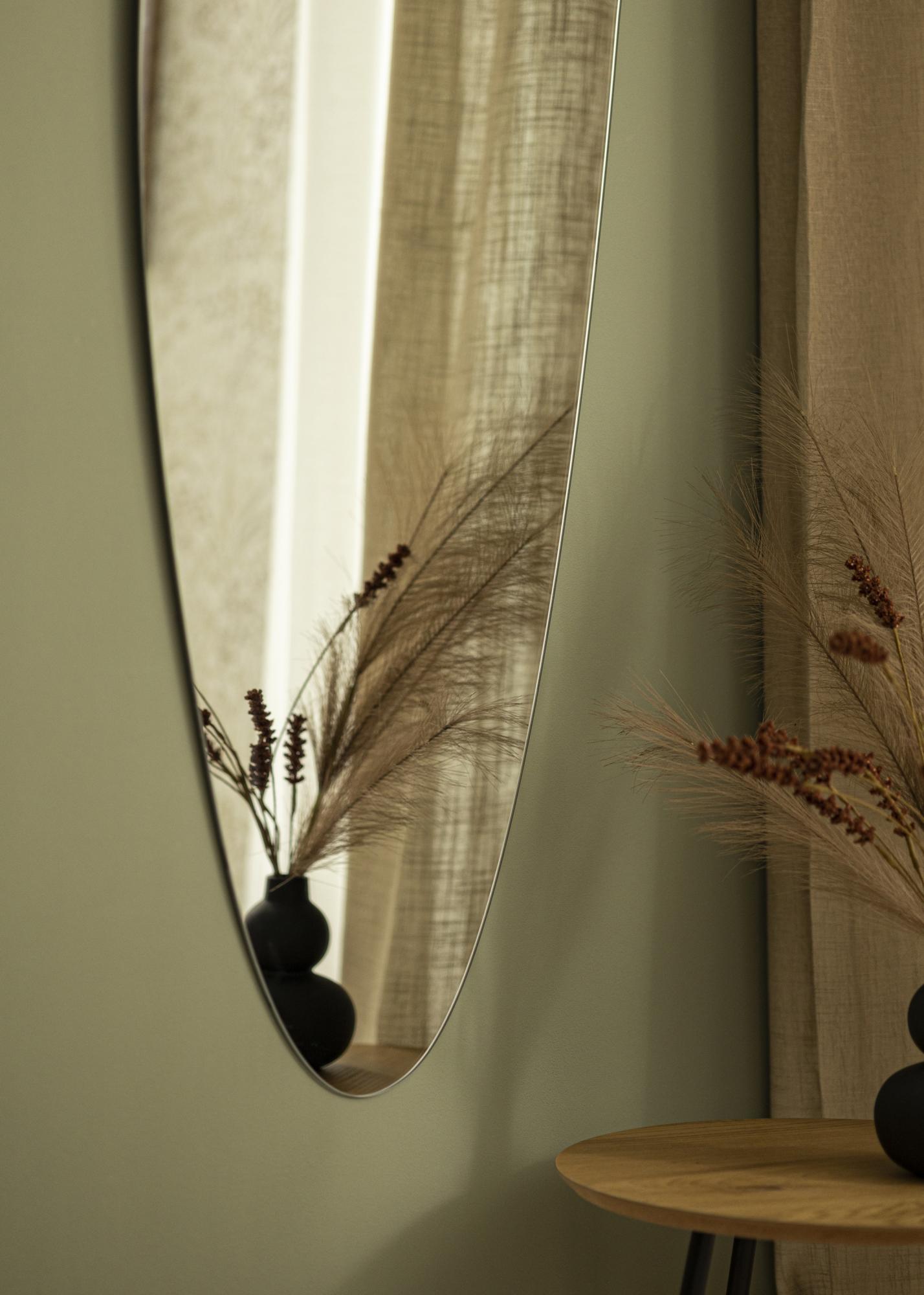 Este espejo de pared es minimalismo en su máxima expresión, con un diseño sin marco y una forma asimétrica y alargada. El grosor del cristal del espejo, de solo 4 mm, refuerza aún más la sensación minimalista y elegante.