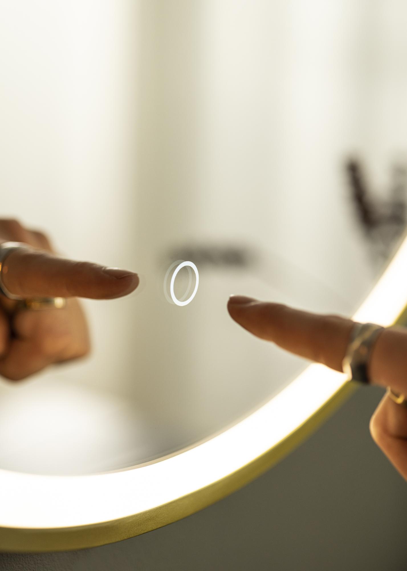 Este espejo de baño tiene una tira de LED incorporada que proporciona una buena iluminación cuando te estás preparando para el día. La iluminación emite una luz de 3000K, que es regulable para tu comodidad. Para regular la luz al brillo deseasdo, mantén presionado el botón táctil en la parte inferior de la superficie del espejo. Luego puedes elegir ajustar el brillo de la tira de LED entre el 10% y el 100%.