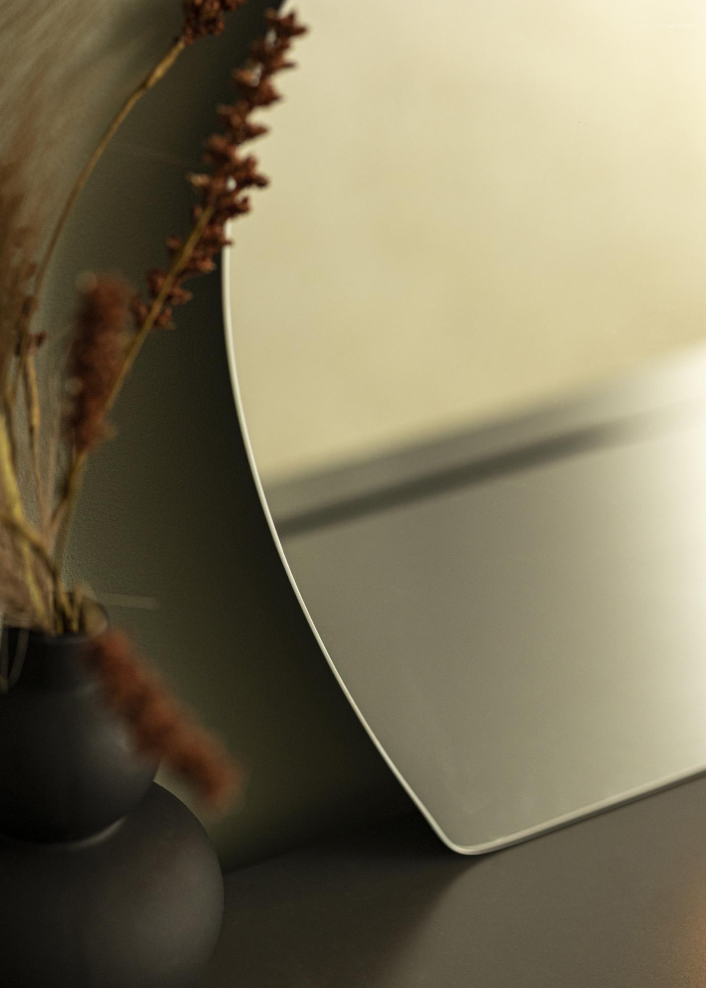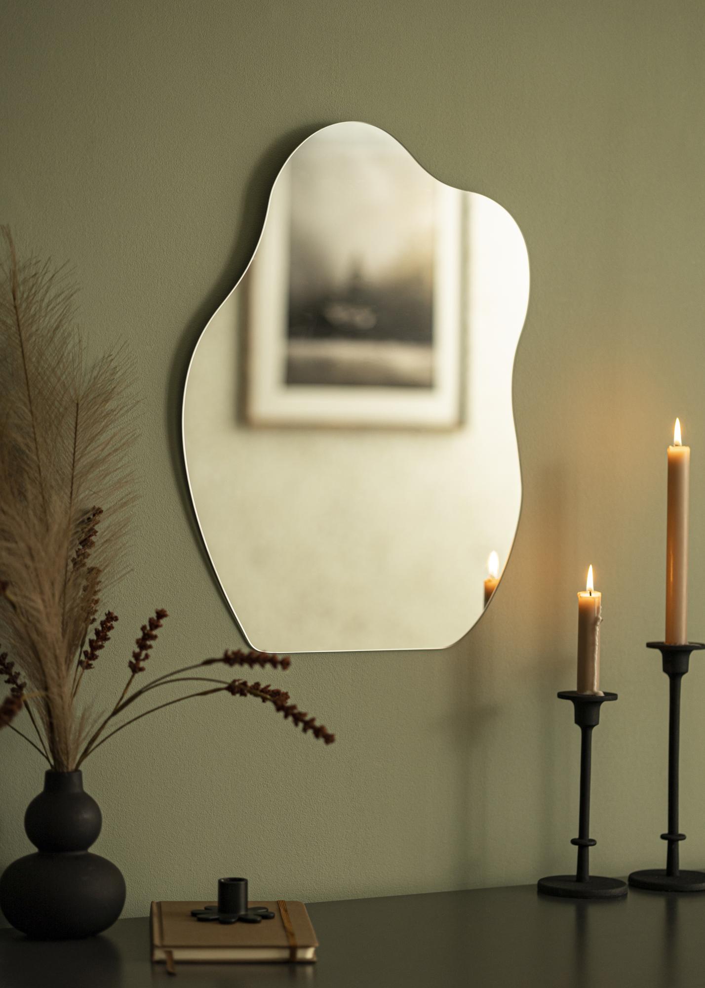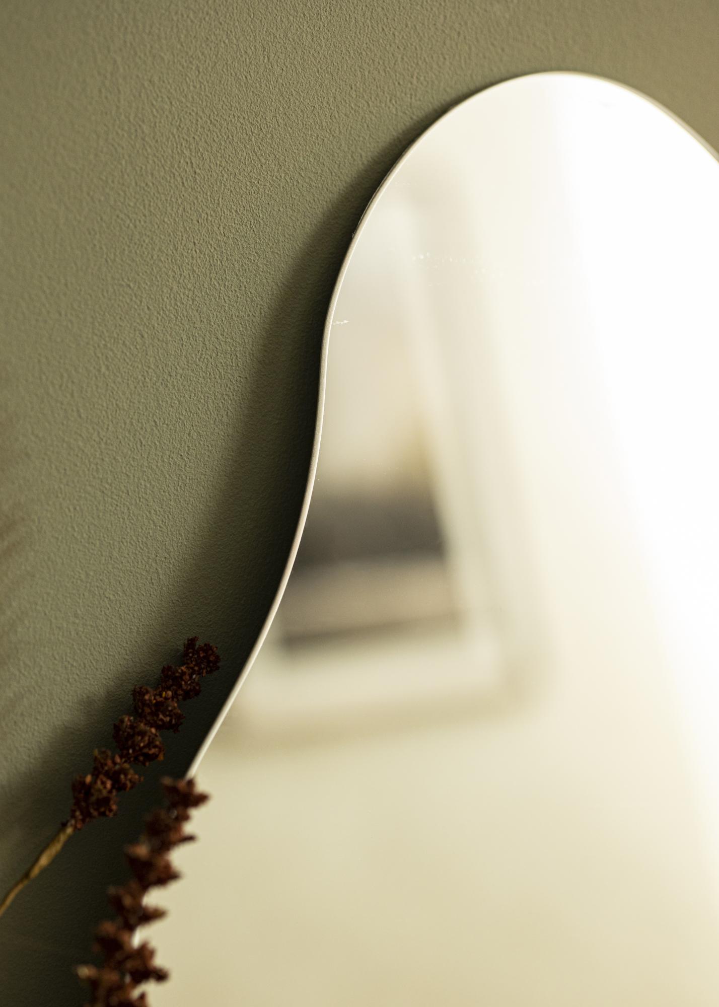 Este espejo de pared ofrece elegancia y diversión, con una forma ondulada que le da a la espejo su aspecto único. El borde inferior es recto, lo que hace que el espejo sea adecuado para colocarlo de soporte sobre un mueble apoyado en la pared. ¡Además, también puedes montar el espejo en la pared!
