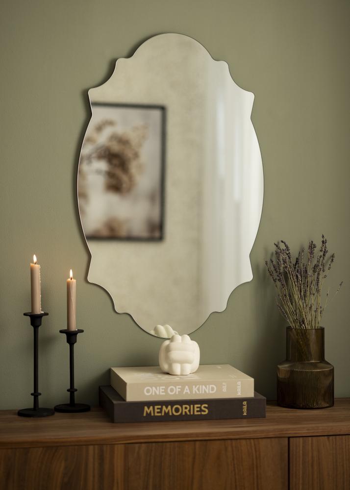Espejo de KAILA, con una hermosa forma ondulada para dar una impresión extra elegante. Este espejo de pared es un detalle de decoración perfecto para el dormitorio o la sala de estar gracias a su diseño atemporal. El espejo tiene un acabado clásico con vidrio de espejo transparente y un soporte de pared que permite una fácil instalación. Este espejo tiene un tamaño de 50x80 cm.