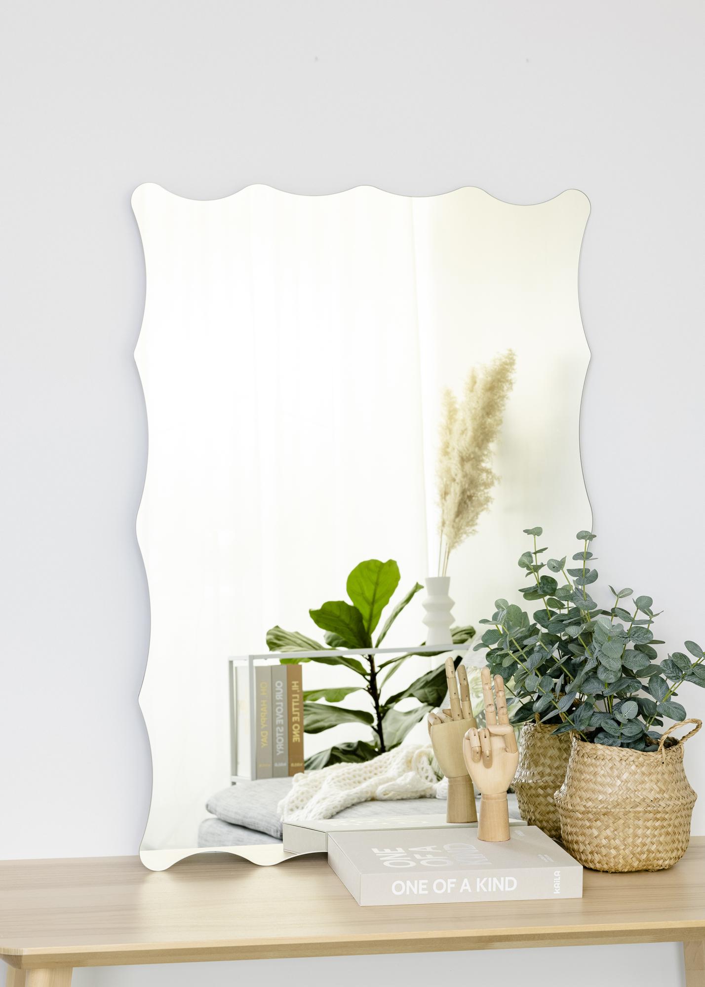 Espejo de KAILA, con una hermosa forma ondulada para dar una impresión extra elegante. Este espejo de pared es un detalle de decoración perfecto para el dormitorio o la sala de estar gracias a su diseño atemporal. El espejo tiene un acabado clásico con vidrio de espejo transparente y un soporte de pared que permite una fácil instalación. Este espejo tiene un tamaño de 70x100 cm.