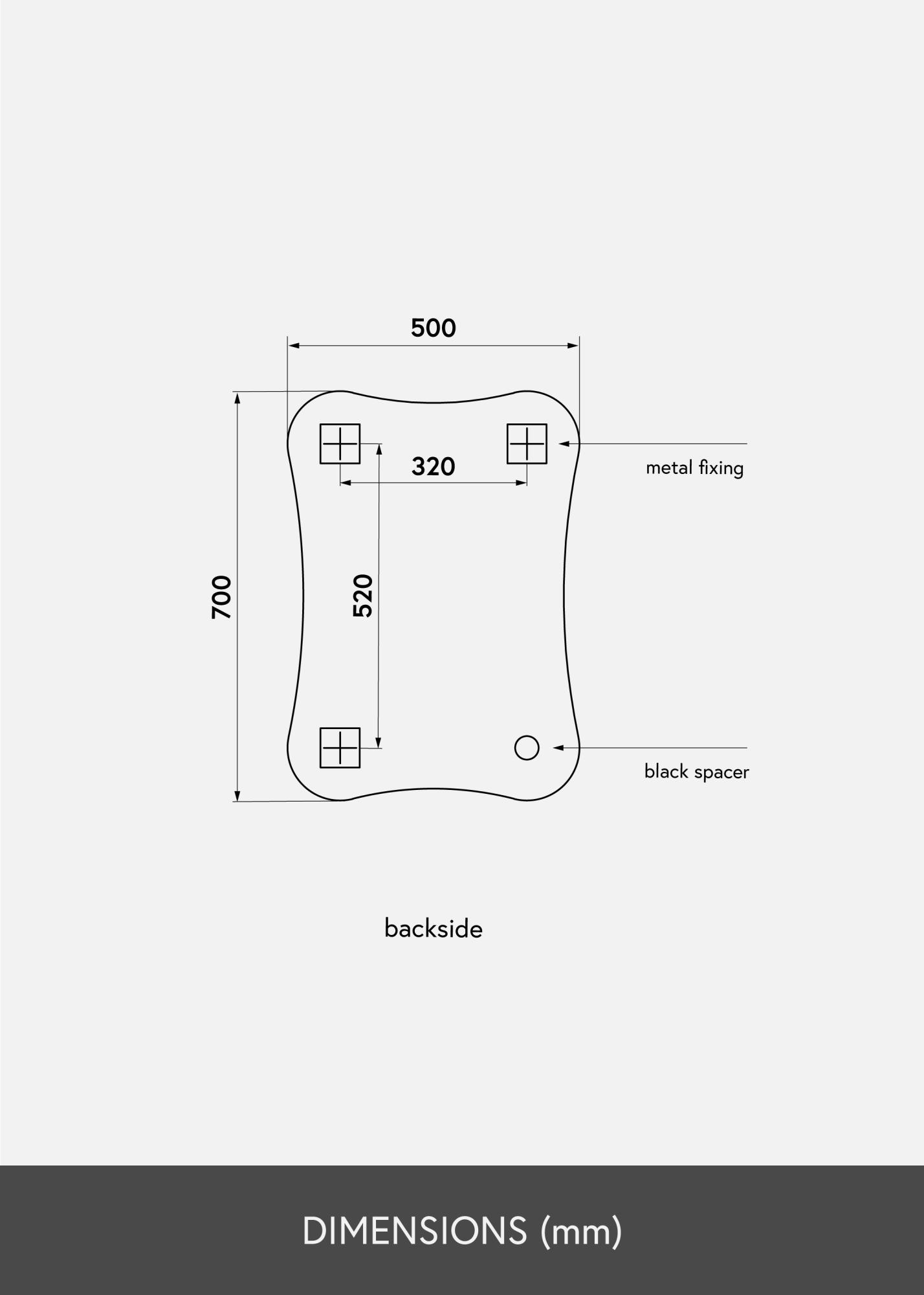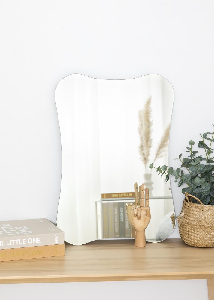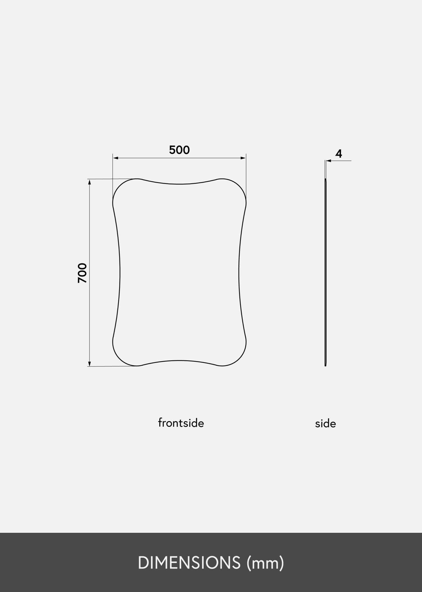 Espejo rectangular de KAILA, con esquinas redondeadas que crean una hermosa forma curvada hacia adentro. El aspecto clásico del espejo se adapta tanto a hogares tradicionales como modernos, y el vidrio del espejo sin color proporciona elegancia atemporal. El espejo tiene un práctico soporte de pared que permite una fácil instalación tanto en posición vertical como horizontal. Este espejo de pared tiene un tamaño de 50x70 cm.