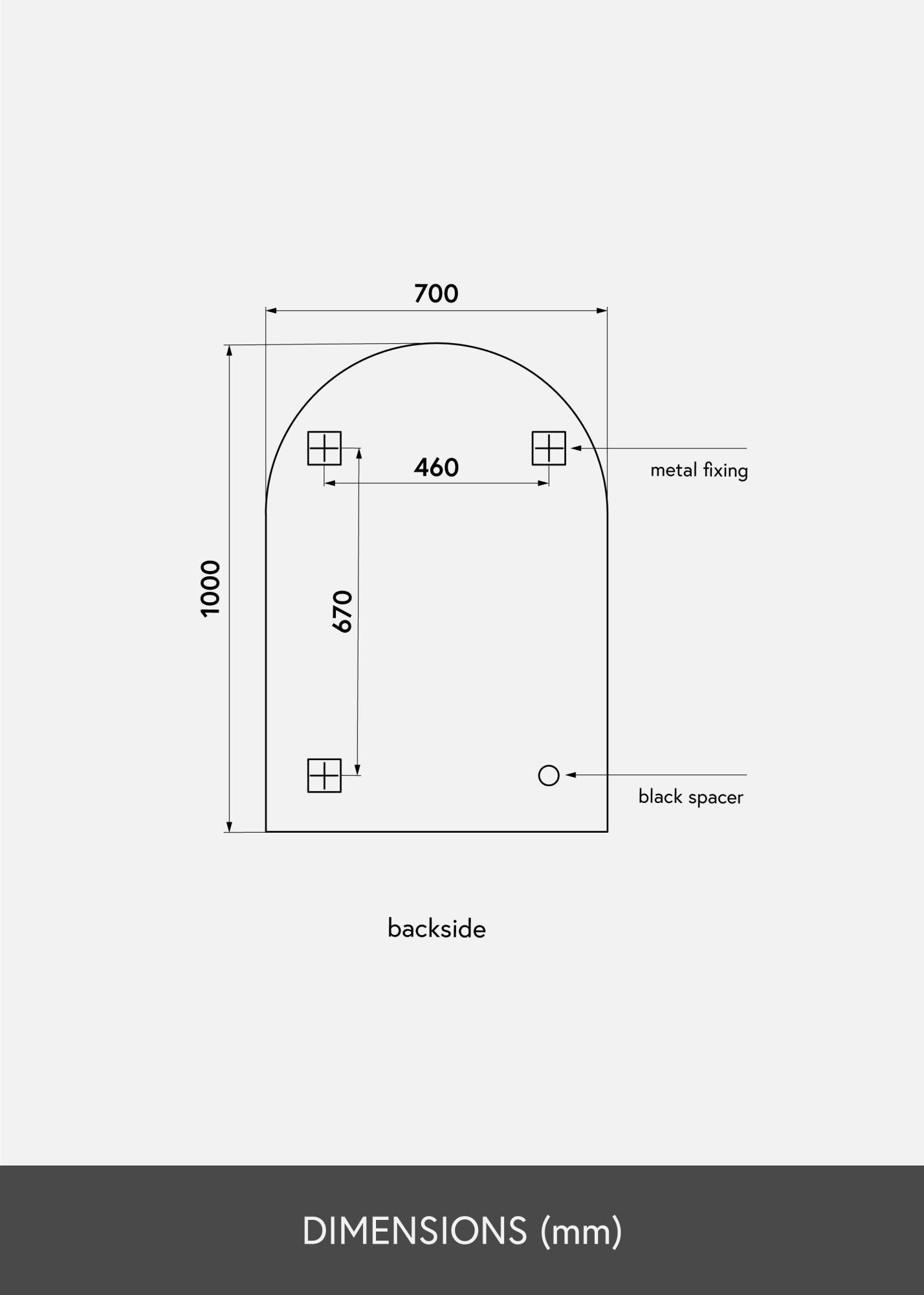 Espejo fino de KAILA con diseño en forma de arco que se adapta perfectamente tanto en la sala de estar como en el dormitorio. El espejo tiene un cristal fino sin color y no tiene ningún marco, lo que refuerza la sensación minimalista. El aspecto elegante hace que el espejo de pared sea perfecto para cualquier hogar. Gracias al práctico soporte de pared, puedes fijar el espejo en la pared. El espejo mide 70x100 cm.