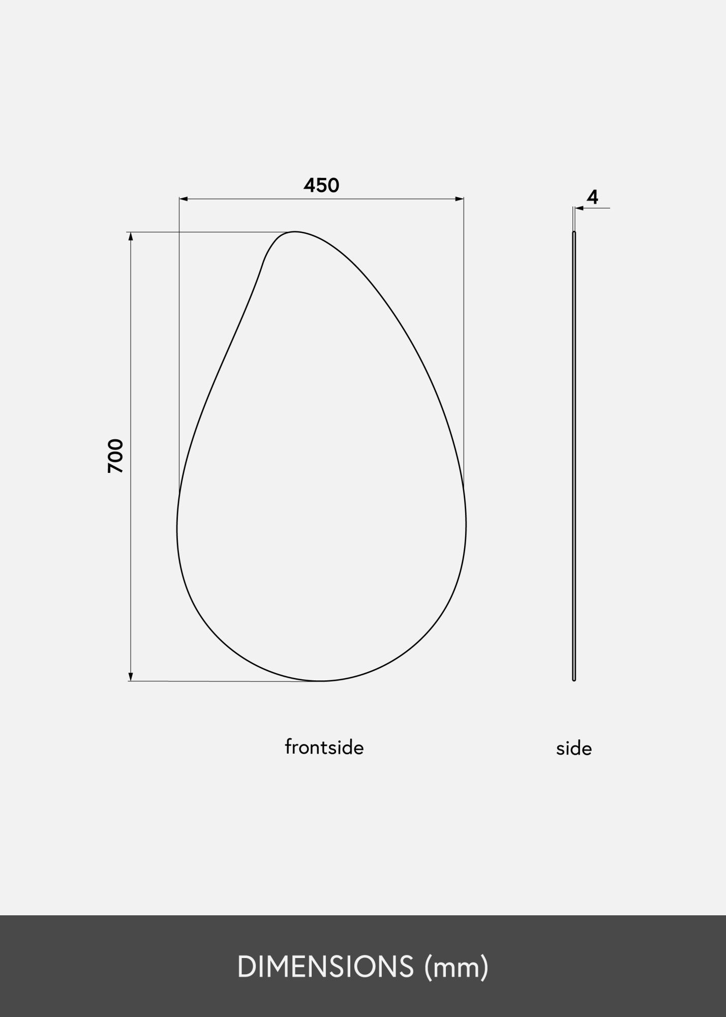 Coloca este elegante espejo donde pueda ser decorativo y funcional, por ejemplo, en el recibidor, dormitorio o sala de estar. Este espejo en forma de gota está disponible en varios tamaños, siendo este modelo de tamaño 45x70 cm.