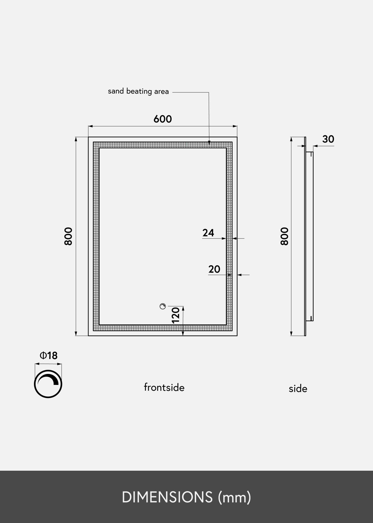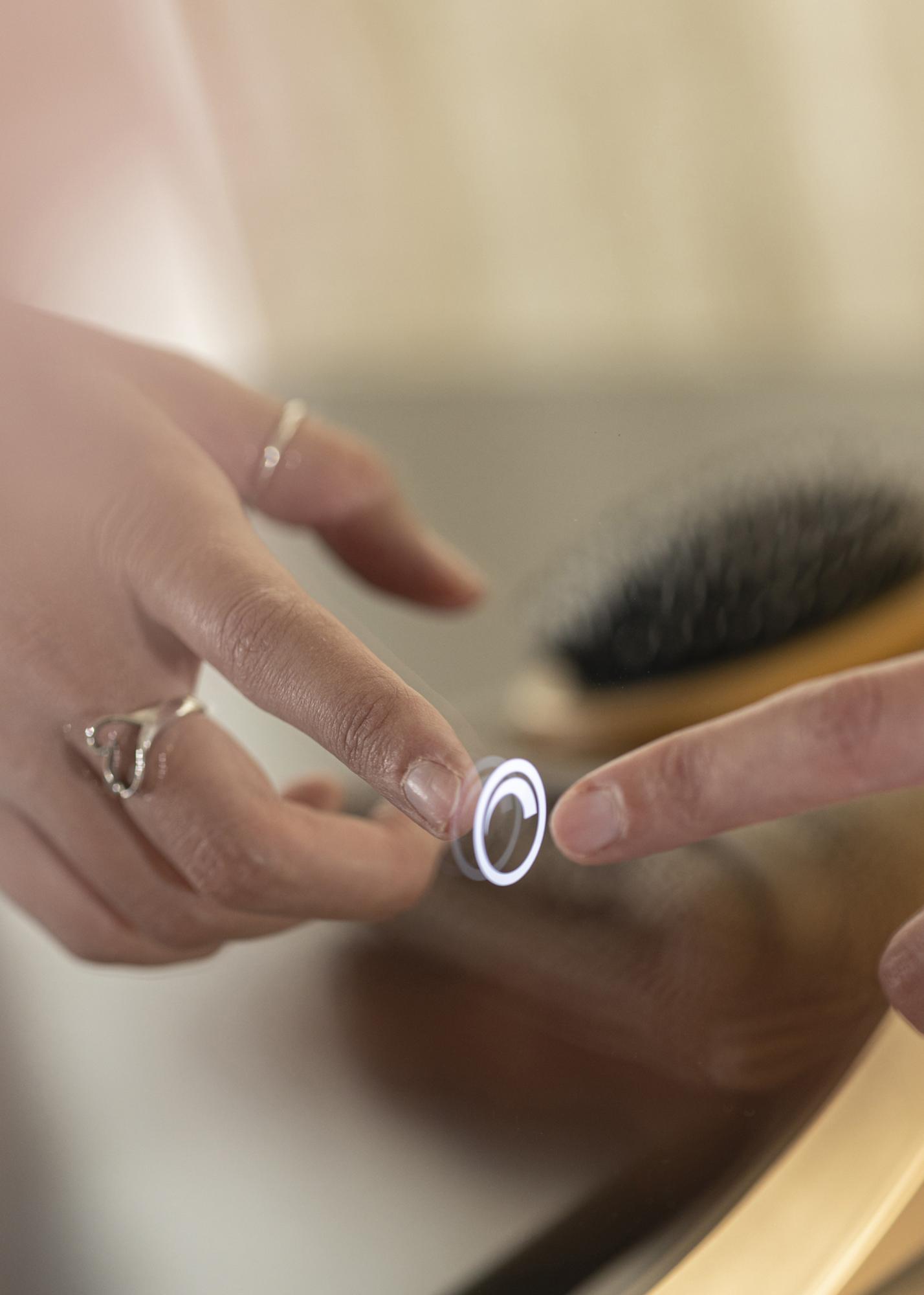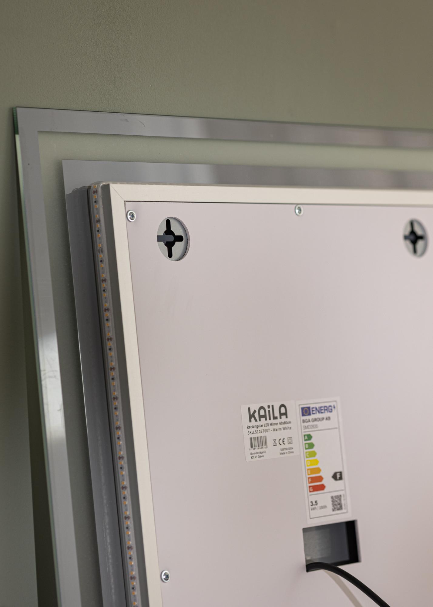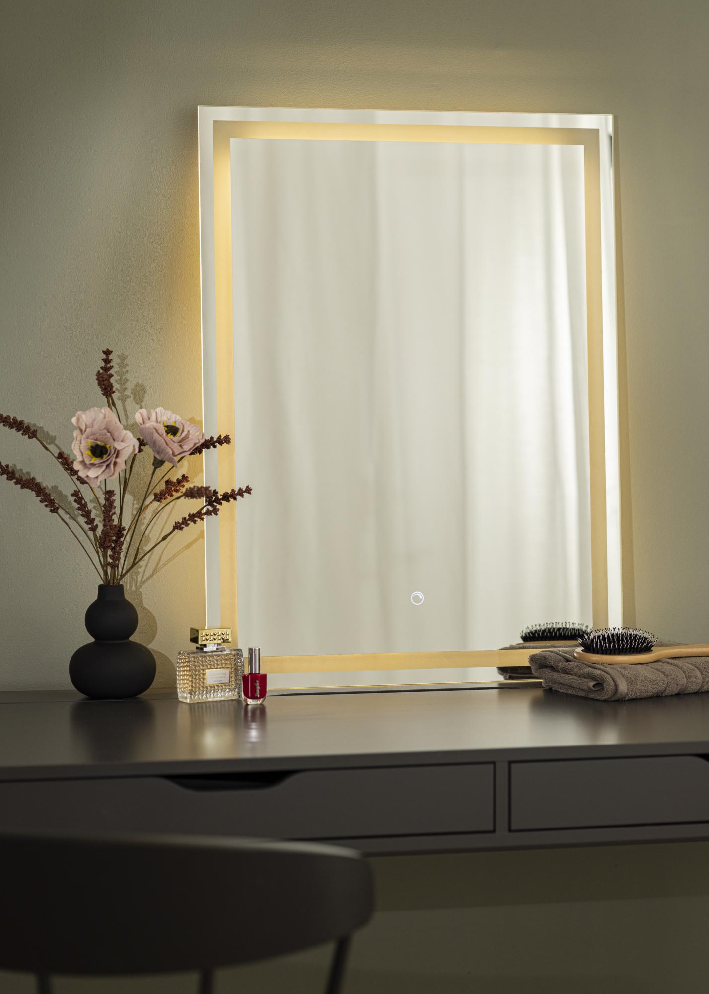 Si deseas un espejo moderno y minimalista con iluminación, este es el espejo para ti. Está equipado con luces LED de bajo consumo que proporcionan una luz uniforme: perfecto para aplicar maquillaje o sencillamente contemplarte durante el día. La iluminación está ubicada en la parte trasera del espejo, pero brilla a través como un elegante marco en la parte delantera del espejo. Para ajustar la intensidad de la luz, mantén presionado el botón táctil en el borde inferior del espejo durante unos segundos.