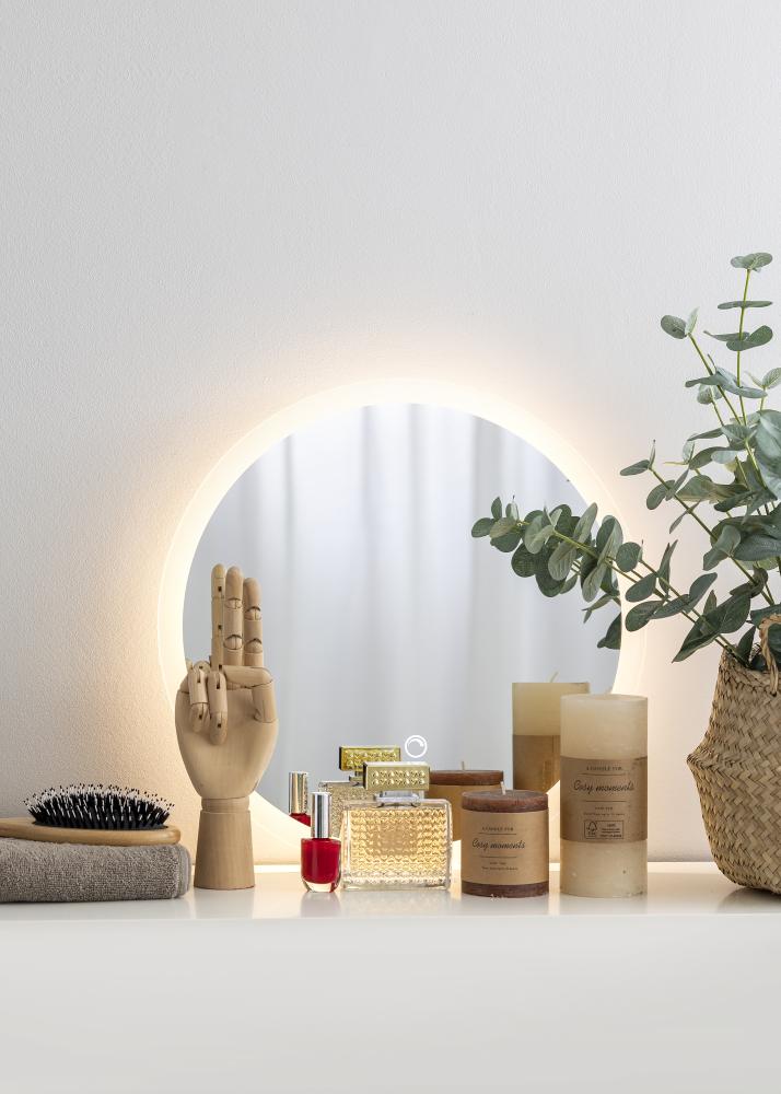 LED es una bombilla de bajo consumo que proporciona una luz uniforme y natural, lo que hace que este espejo sea perfecto como espejo de baño y como espejo para tocador, ¡o incluso como espejo de entrada! El elegante espejo tiene un diámetro de 40 cm y solo tiene 3 cm de grosor.
