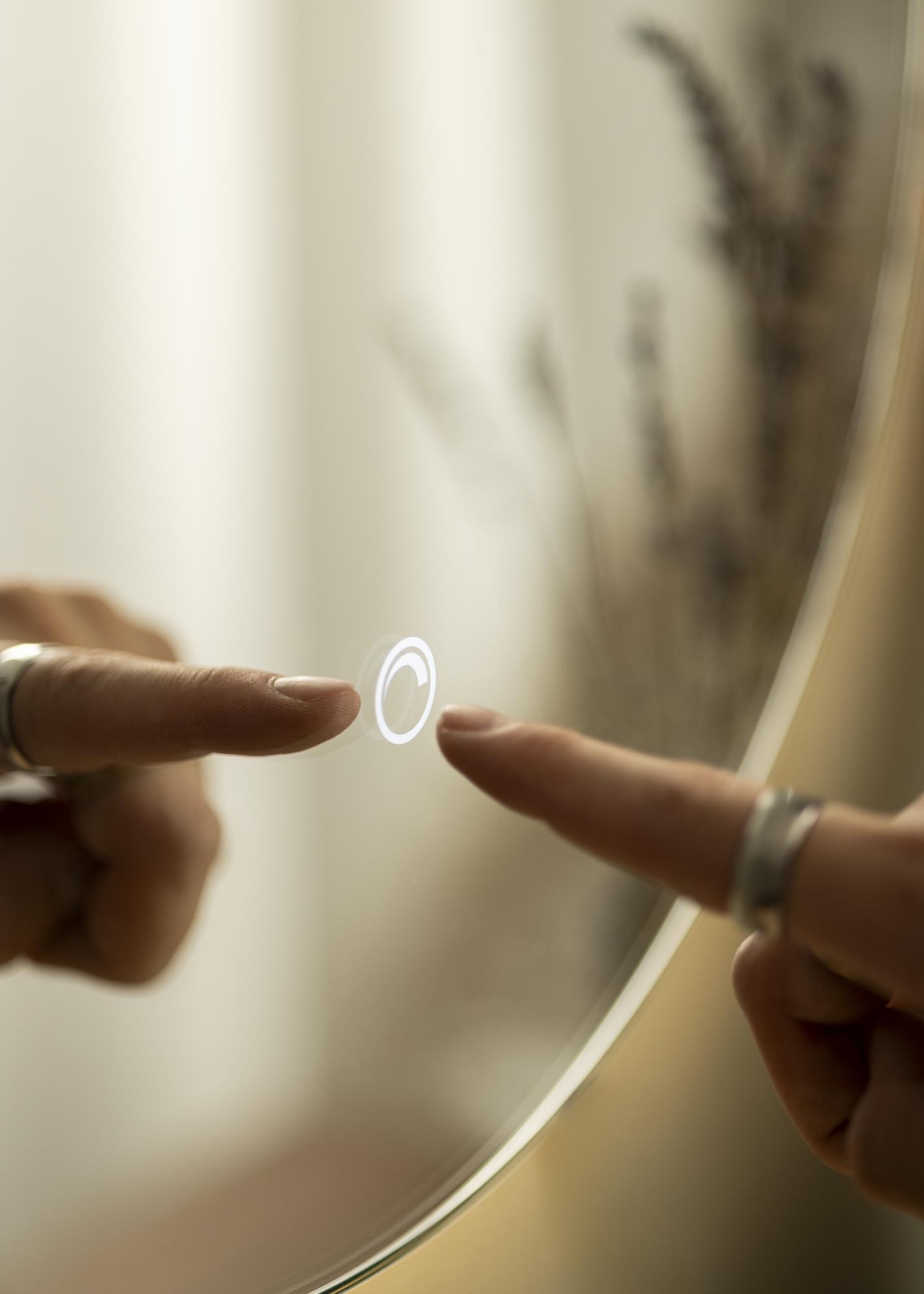 Este es un espejo de baño clásico en forma redonda de la marca sueca KAILA. El espejo de baño tiene iluminación LED integrada y regulable alrededor que se ilumina desde atrás y proporciona una agradable luz blanca cálida hacia adelante en 3000K. La iluminación es regulable y puedes ajustar fácilmente la intensidad de la luz manteniendo presionado el botón durante unos segundos. La próxima vez que enciendas la iluminación, el espejo recordará el brillo al que estaba ajustado. El LED es una bombilla de bajo consumo que proporciona una luz uniforme y natural.