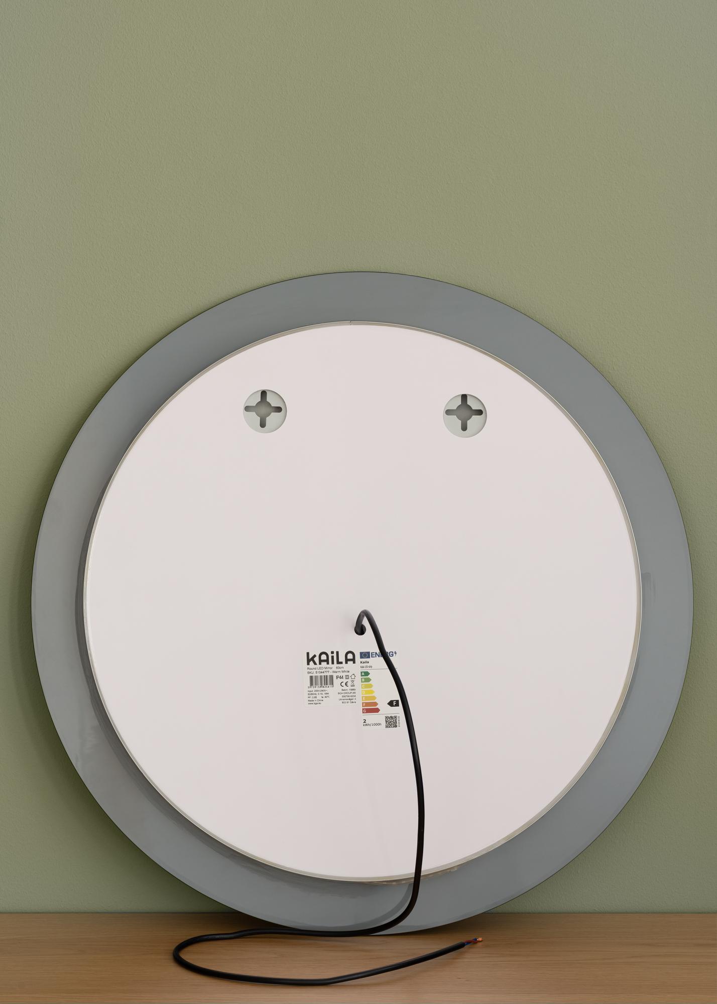 Este es un espejo de baño clásico en forma redonda de la marca sueca KAILA. El espejo de baño tiene iluminación LED integrada y regulable alrededor que se ilumina desde atrás y proporciona una agradable luz blanca cálida hacia adelante en 3000K. La iluminación es regulable y puedes ajustar fácilmente la intensidad de la luz manteniendo presionado el botón durante unos segundos. La próxima vez que enciendas la iluminación, el espejo recordará el brillo al que estaba ajustado. El LED es una bombilla de bajo consumo que proporciona una luz uniforme y natural.