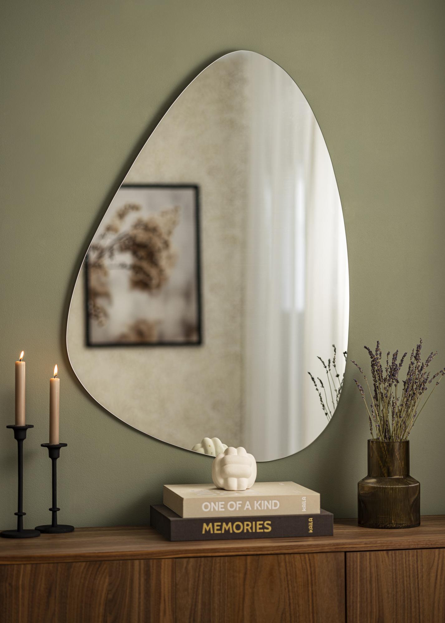 Un espejo asimétrico se convierte en un detalle de decoración en tendencia en tu hogar. Coloca el espejo donde se vea decorativo y al mismo tiempo cumpla su función práctica como espejo, por ejemplo, en el recibidor, dormitorio o sala de estar. Este espejo está disponible en varios tamaños, y este modelo en particular tiene un tamaño de 70x100 cm.