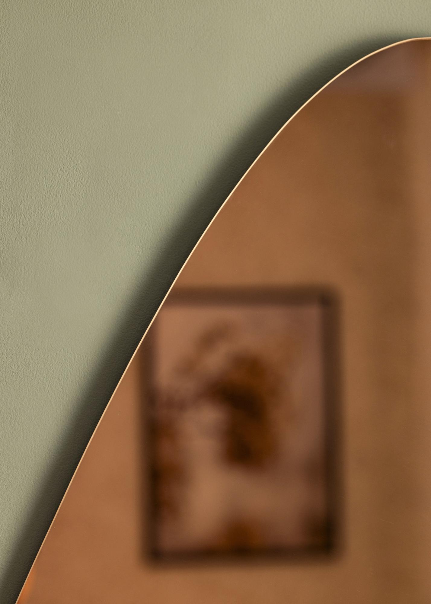 Este espejo asimétrico crea una impresión moderno en tu hogar, y con sus generosas dimensiones de 70x100 cm, ¡realmente causa una gran impresión! El espejo también tiene un vidrio de espejo tono dorado rosa que realza el diseño llamativo y la sensación inconfundible del espejo. Además, este espejo es muy fino, lo que le da un aspecto elegante y lo hace sentir aún más moderno.