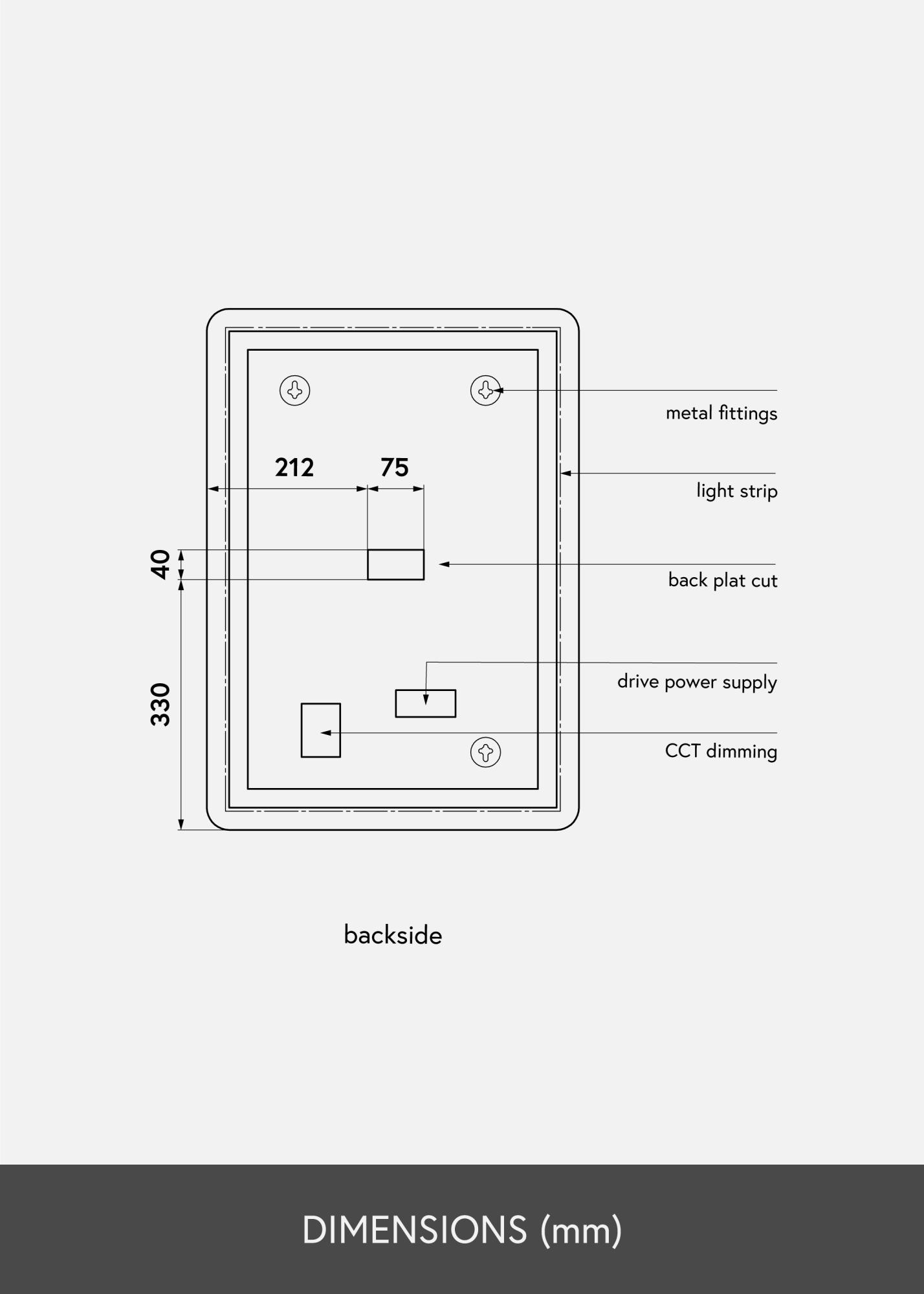 Este elegante espejo de baño tiene solo 3 cm de profundidad y mide 50x70 cm. El espejo de baño tiene soportes de pared y se puede montar tanto horizontal como verticalmente. La iluminación LED regulable y los bordes suaves hacen que el espejo aporte una sensación cálida y suave a la habitación en la que se coloca. El espejo está aprobado para su uso en el baño. El espejo de baño está destinado a una instalación fija y se conecta a un interruptor de luz. Para que el espejo funcione correctamente, debe conectarse a un interruptor de luz normal, no a un regulador de luz.