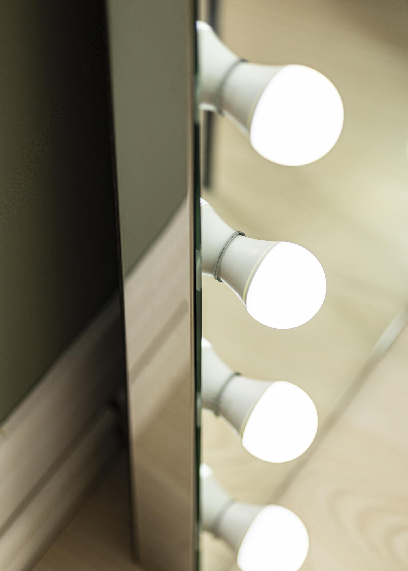 Este espejo de recibidor tiene iluminación LED integrada en forma de 22 lámparas LED que enmarcan hermosamente la superficie del espejo y le dan su aspecto lujoso. En un lado largo del espejo hay un pequeño botón giratorio que puedes usar para regular la intensidad de la iluminación a un nivel que te convenga.
