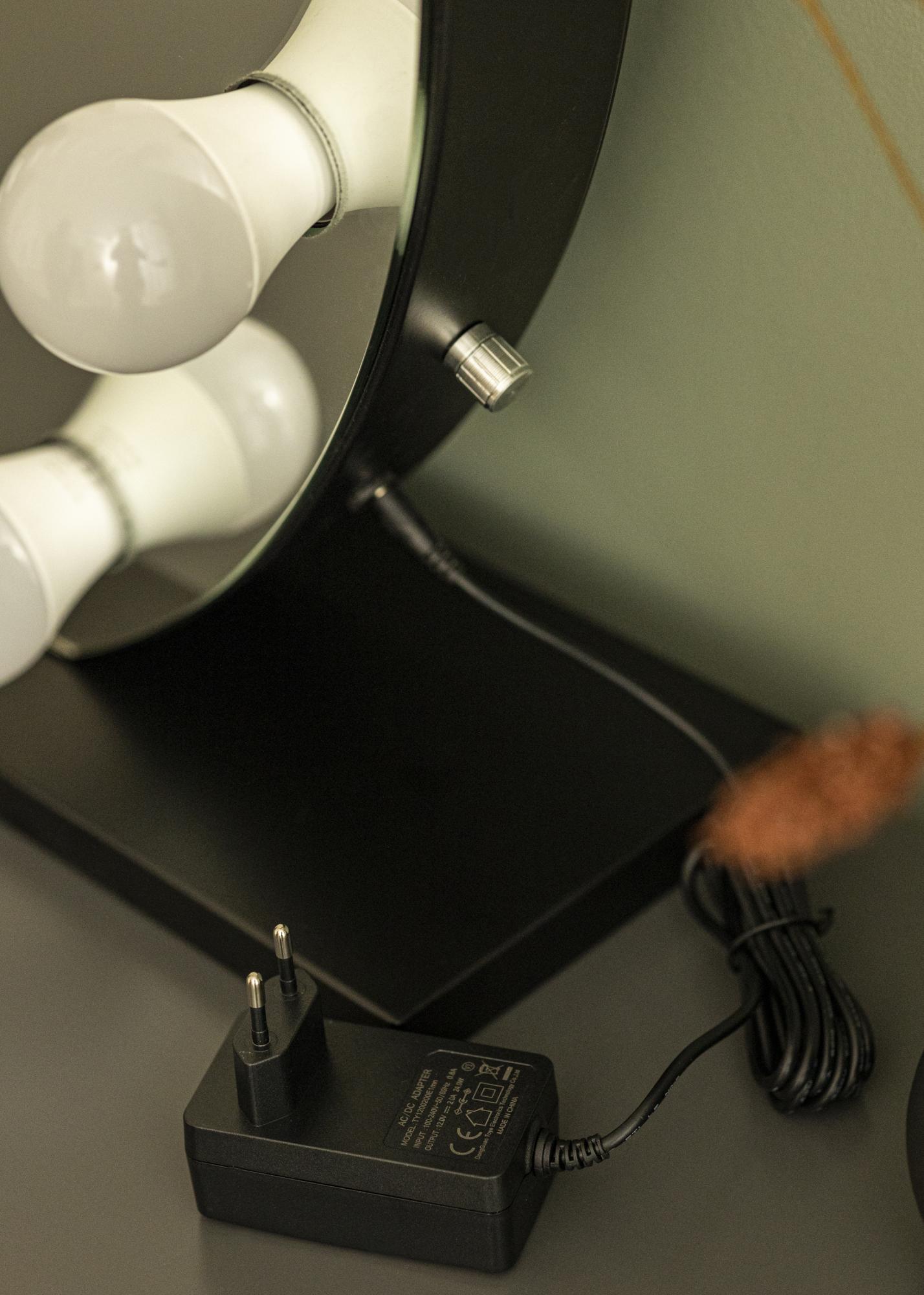 ¡Este decorativo espejo ofrece tanto estilo como funcionalidad! Tiene un diseño elegante, con forma redonda, un soporte negro y 10 bombillas con casquillo E27 que enmarcan hermosamente la superficie del espejo. La iluminación integrada emite una luz blanca fría perfecta para arreglarte antes de comenzar el día. El espejo se puede colocar de pie, lo que te permite colocarlo fácilmente en el dormitorio, la sala de estar o el recibidor, donde la iluminación del espejo también puede funcionar como una bonita iluminación de fondo. También se puede montar en la pared. La iluminación es regulable y para ajustarla, gira el botón ubicado en el lateral del espejo.