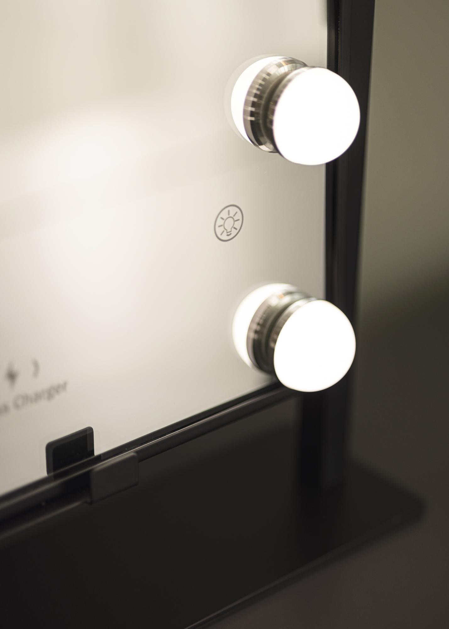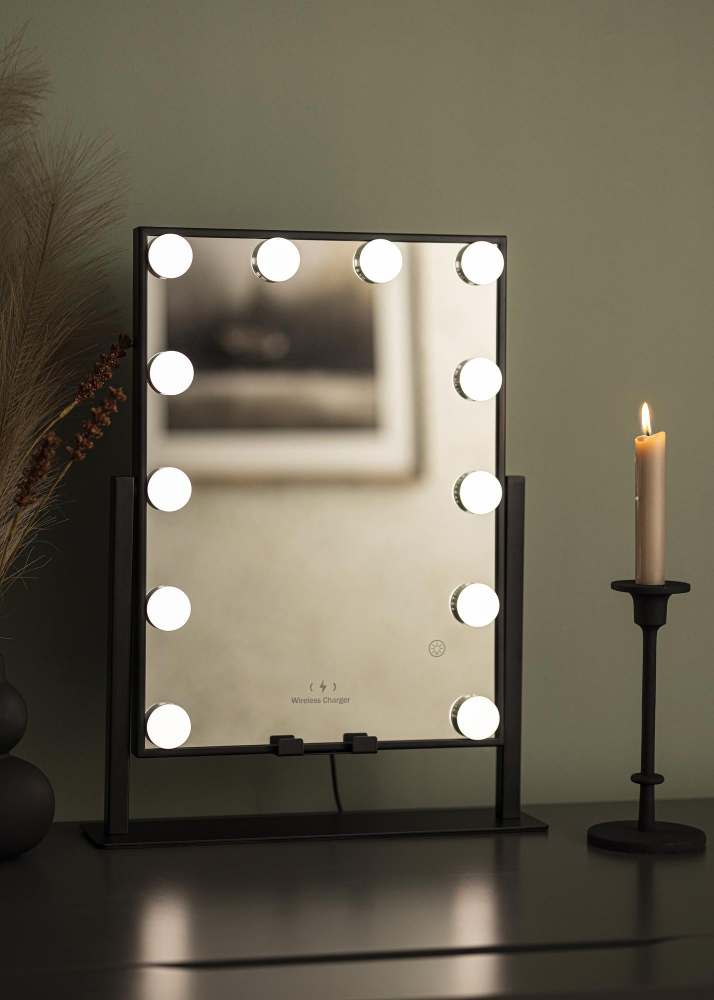 KAILA Espejo tocador Hollywood 12 Negro con cargador inalámbrico 30x41 cm