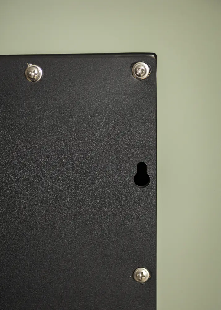 El espejo está fabricado en hierro y tiene un diseño elegante en su base, con una gran superficie reflectante de 80x65 cm. También puedes optar por quitar la base y colgar el espejo en la pared. El color negro es fácil de combinar con el resto de la decoración, sin importar la paleta de colores que tengas en tu hogar. La conexión eléctrica del espejo se realiza mediante un enchufe.