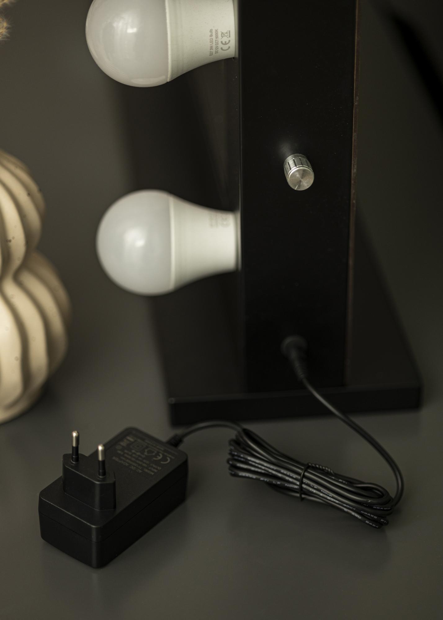 Este espejo de maquillaje tiene un elegante diseño al estilo de Hollywood, que embellecerá tu rincón de maquillaje o tu sala de estar. El espejo tiene iluminación integrada en forma de 14 bombillas intercambiables, que están colocadas en el marco negro del espejo. Las bombillas son intercambiables y tienen base E27. La iluminación emite una luz blanca fría. En uno de los lados del espejo hay un dial, que puedes girar para ajustar la intensidad de la luz a tu preferencia.