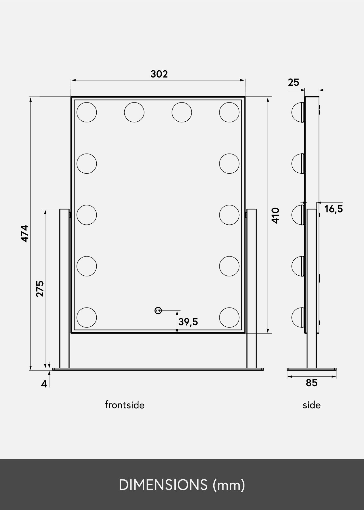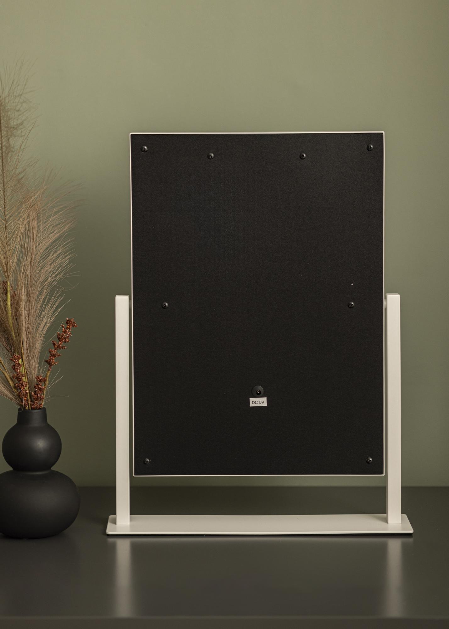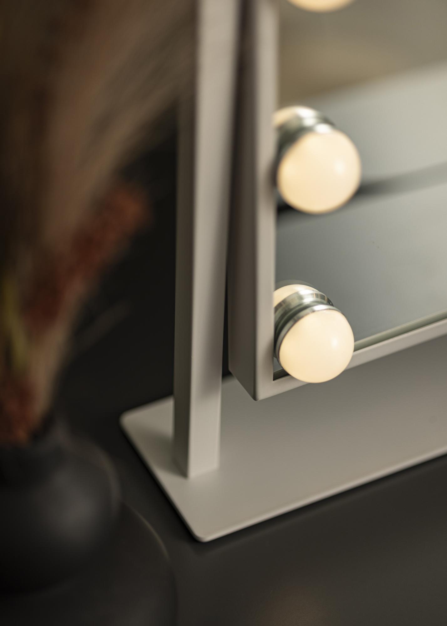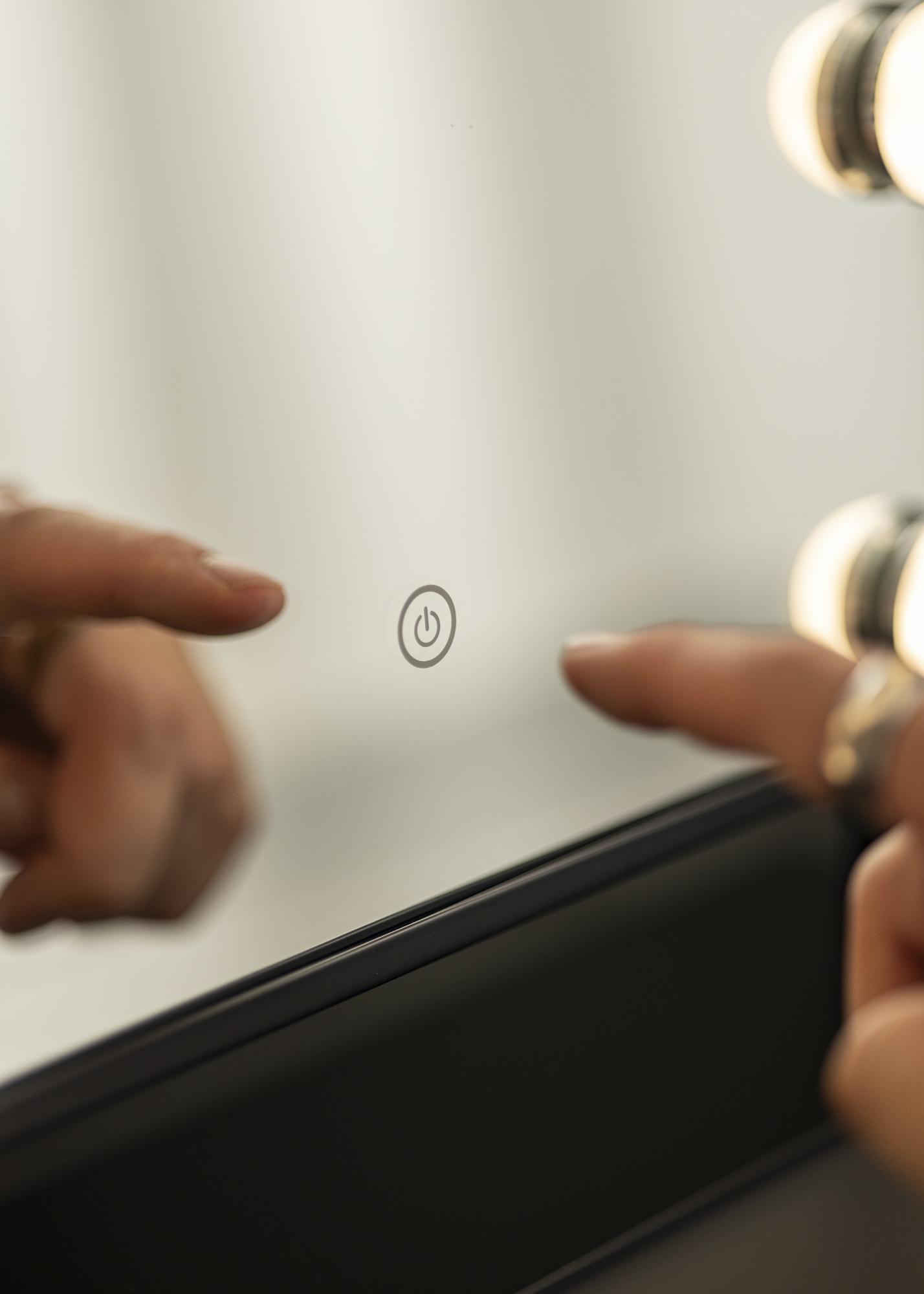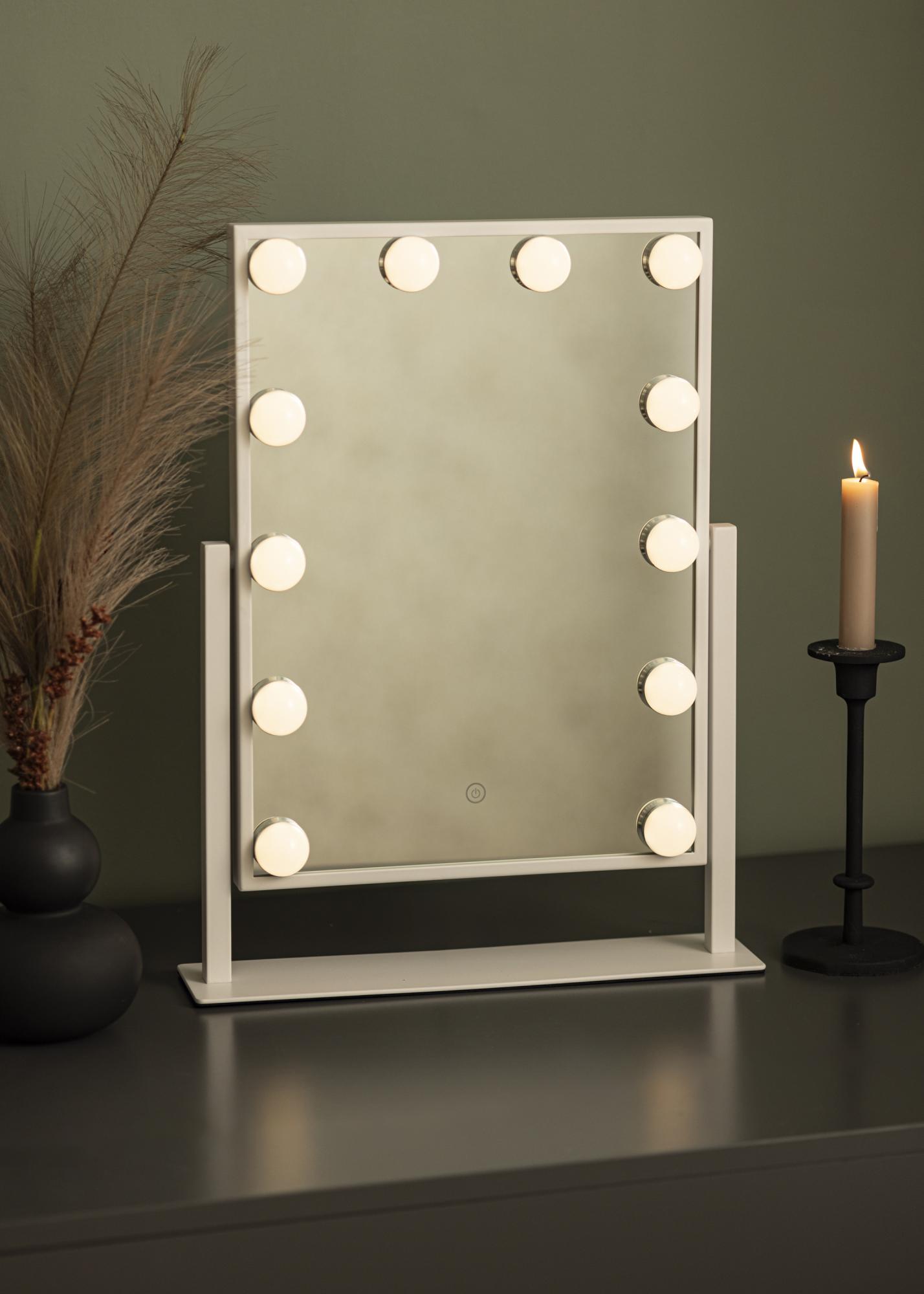 Este es un espejo para tocador de diseño lujoso con 12 bombillas LED decorativas en un elegante tono blanco. Las bombillas enmarcan elegantemente la generosa superficie del espejo que mide 30x40 cm y proporciona una luz blanca cálida en 3000K. La iluminación se enciende presionando el botón táctil en la pantalla y tiene una función regulable que se ajusta fácilmente manteniendo presionado el botón durante unos segundos. El espejo se puede inclinar verticalmente para que puedas maquillarte desde el ángulo que más te convenga. Además de sus muchas funciones, este espejo para tocador se convierte en un elegante detalle y crea una auténtica sensación de Hollywood en tu hogar.