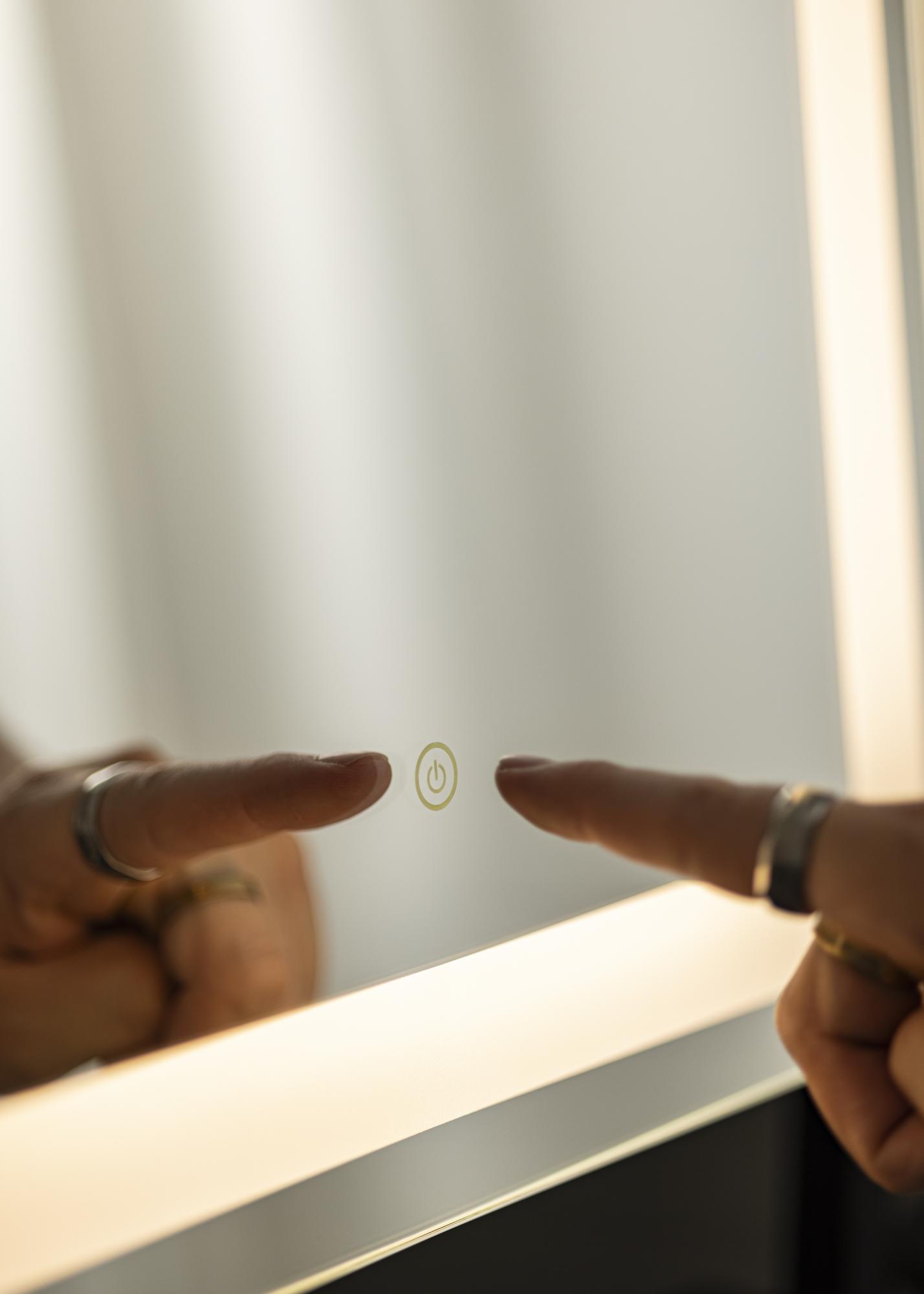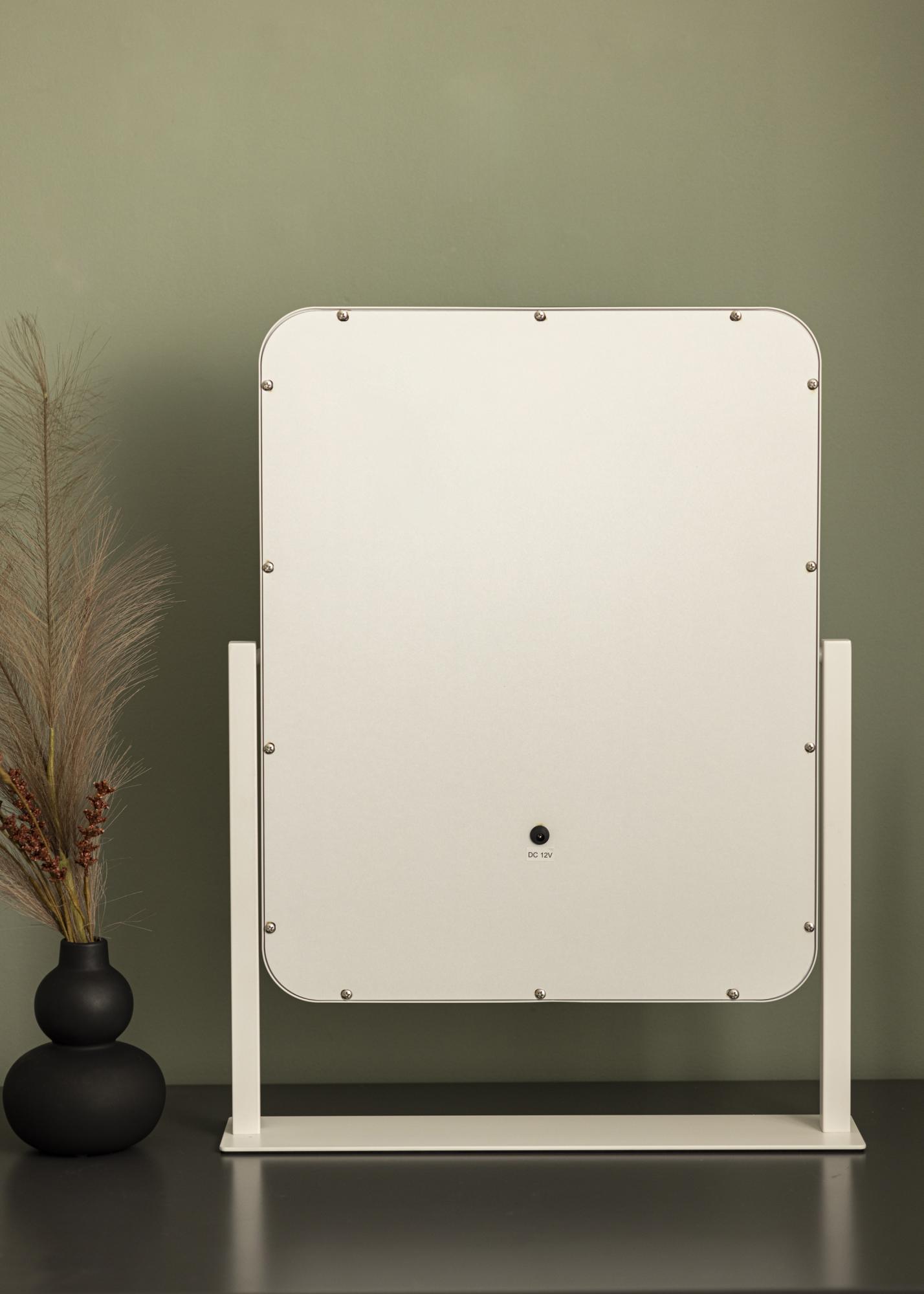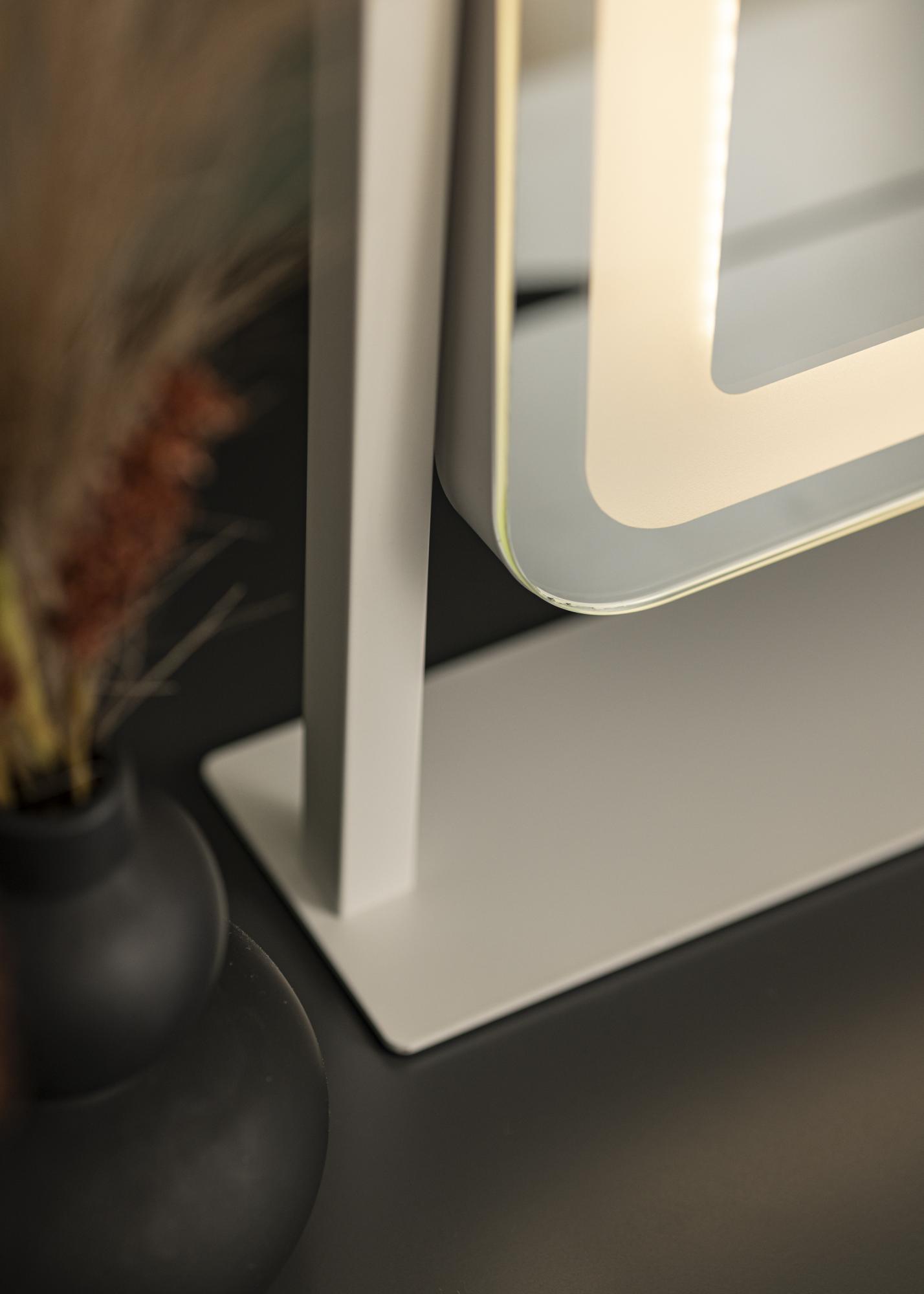¡Un espejo para tocador para aquellos que se sienten atraídos por el diseño moderno! Este espejo de diseño sueco de KAILA tiene un elegante tono blanco y un borde opaco con iluminación LED integrada alrededor del espejo. La iluminación LED proporciona una luz blanca cálida de 3000K, perfecta para aplicar maquillaje. Puede encender fácilmente la iluminación presionando el botón táctil en la pantalla y ajustar el brillo manteniendo presionado el botón durante unos segundos. El espejo para tocador mide 45x60 cm y se puede ajustar para que pueda reflejarse fácilmente desde diferentes ángulos.