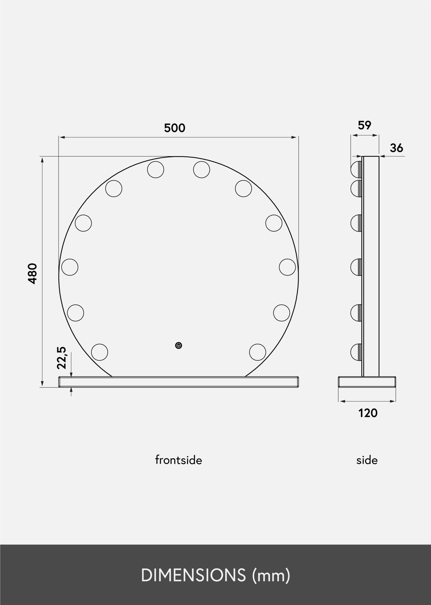 El espejo mide 50x48 cm. La hermosa forma redondeada hace que el espejo para tocador sea algo más que un sencillo espejo funcional. Su aspecto exclusivo crea un gran efecto de glamour y transforma tu habitación en un salón de belleza.