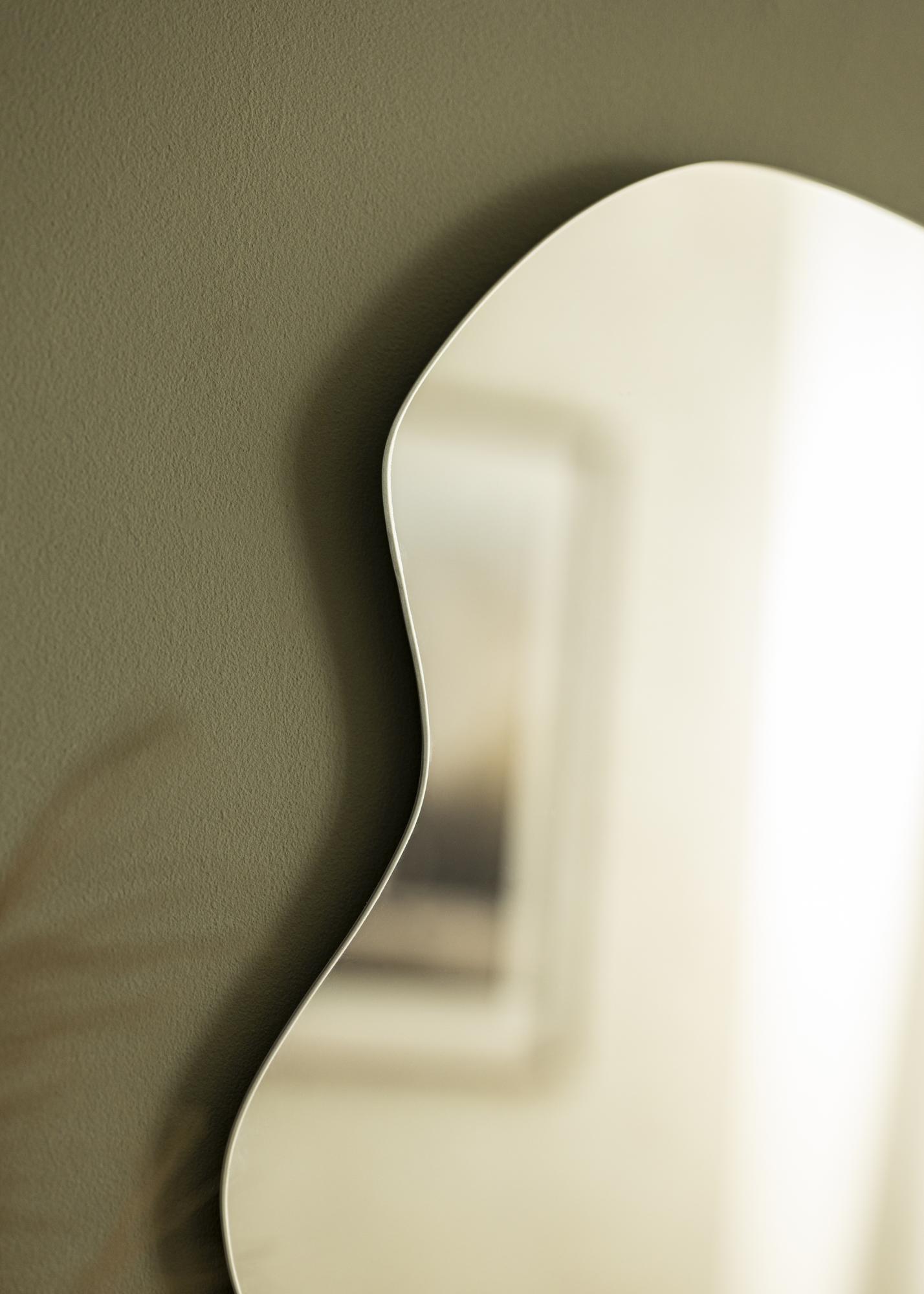 Este es un excelente espejo de pared para aquellos que buscan la combinación perfecta de elegancia clásica y modernidad. Su forma ligeramente ondulada le da al espejo un aspecto único y moderno, mientras que la falta de marco le aporta un toque extra de elegancia.