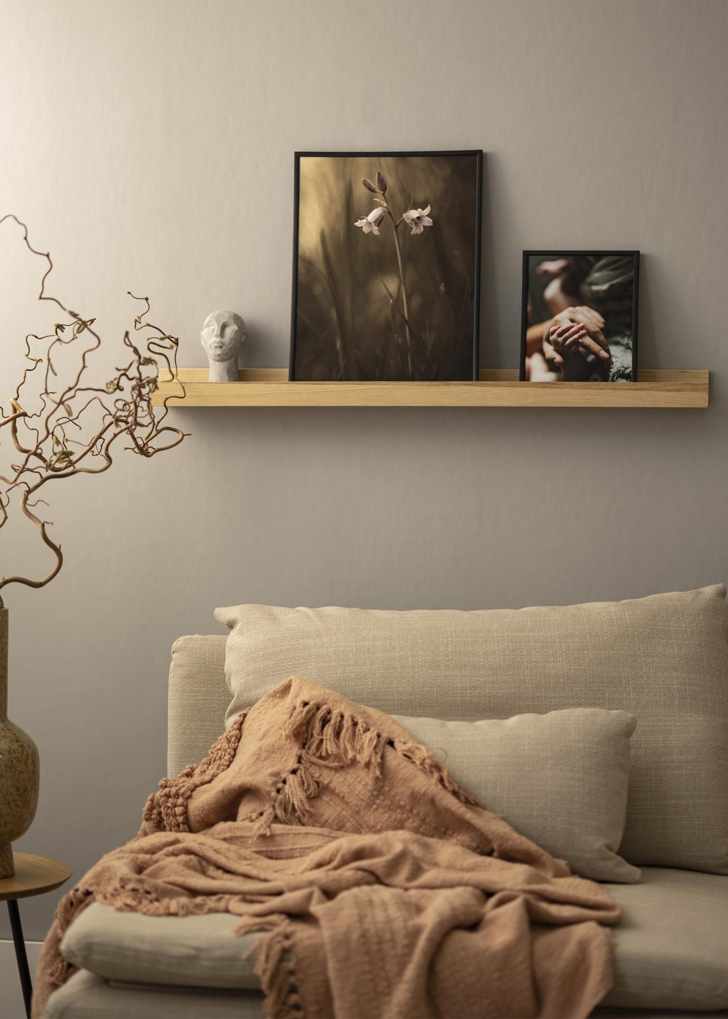 Ten en cuenta que debido a que la repisa para cuadros está hecha de roble macizo, puede haber variaciones naturales de color. La repisa para cuadros está tratada con un aceite transparente protector.