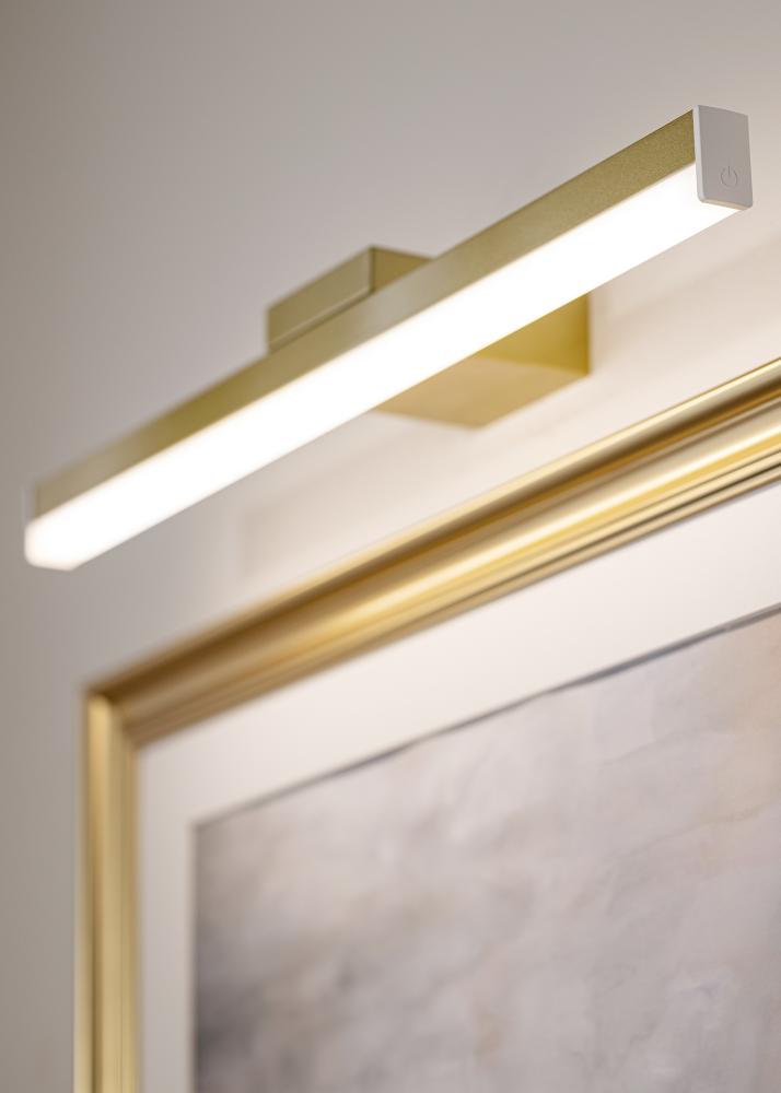 KAILA Glimmer es una iluminación de cuadros elegante y a batería en oro, diseñada para resaltar tus obras de arte de manera estilizada, sin cables. La construcción inalámbrica facilita montar la iluminación en cualquier lugar sin preocuparse por los enchufes. El acabado dorado sofisticado proporciona una sensación exclusiva, mientras que la luz integrada crea una iluminación uniforme y agradable. Fácil de instalar y usar, es una solución perfecta para dar a tus cuadros la atención que merecen.