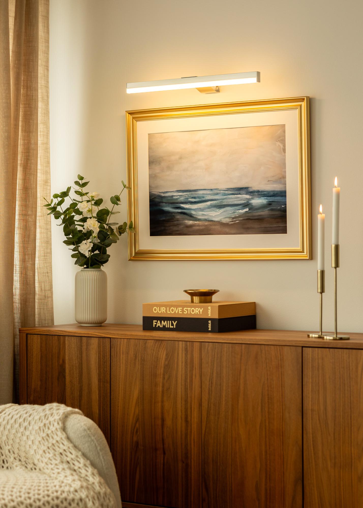 Esta iluminación de cuadros a pilas ofrece una solución práctica y flexible para iluminar tus obras de arte sin necesidad de cables. Gracias a su diseño alimentado por baterías, puedes colocar la lámpara en cualquier lugar, lo que hace sencillo darle a tu hogar un punto de luz elegante y con estilo, por ejemplo, sobre un cuadro o una fotografía. Con una profundidad de 15 cm y una longitud de 55 cm, la lámpara está perfectamente adaptada para proporcionar una iluminación uniforme a imágenes de hasta 80 cm de ancho.