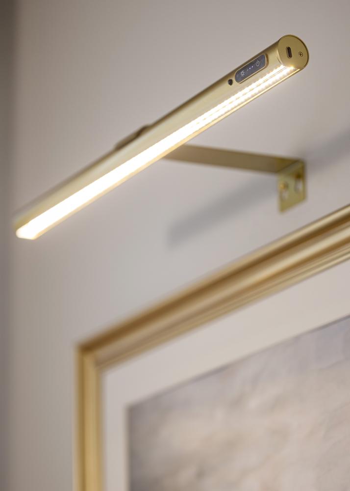 KAILA Halo es una iluminación de cuadros elegante y alimentada por batería en oro, perfecta para iluminar tus obras de arte sin cables molestos. Gracias al diseño sin cables, puedes colocarla en cualquier lugar sin tener que preocuparte por enchufes eléctricos. El elegante acabado en oro proporciona una expresión exclusiva, mientras que la luz se distribuye uniformemente para resaltar los detalles y colores de manera hermosa. Fácil de montar y conveniente de usar: una solución práctica para dar a tus cuadros la atención que merecen.