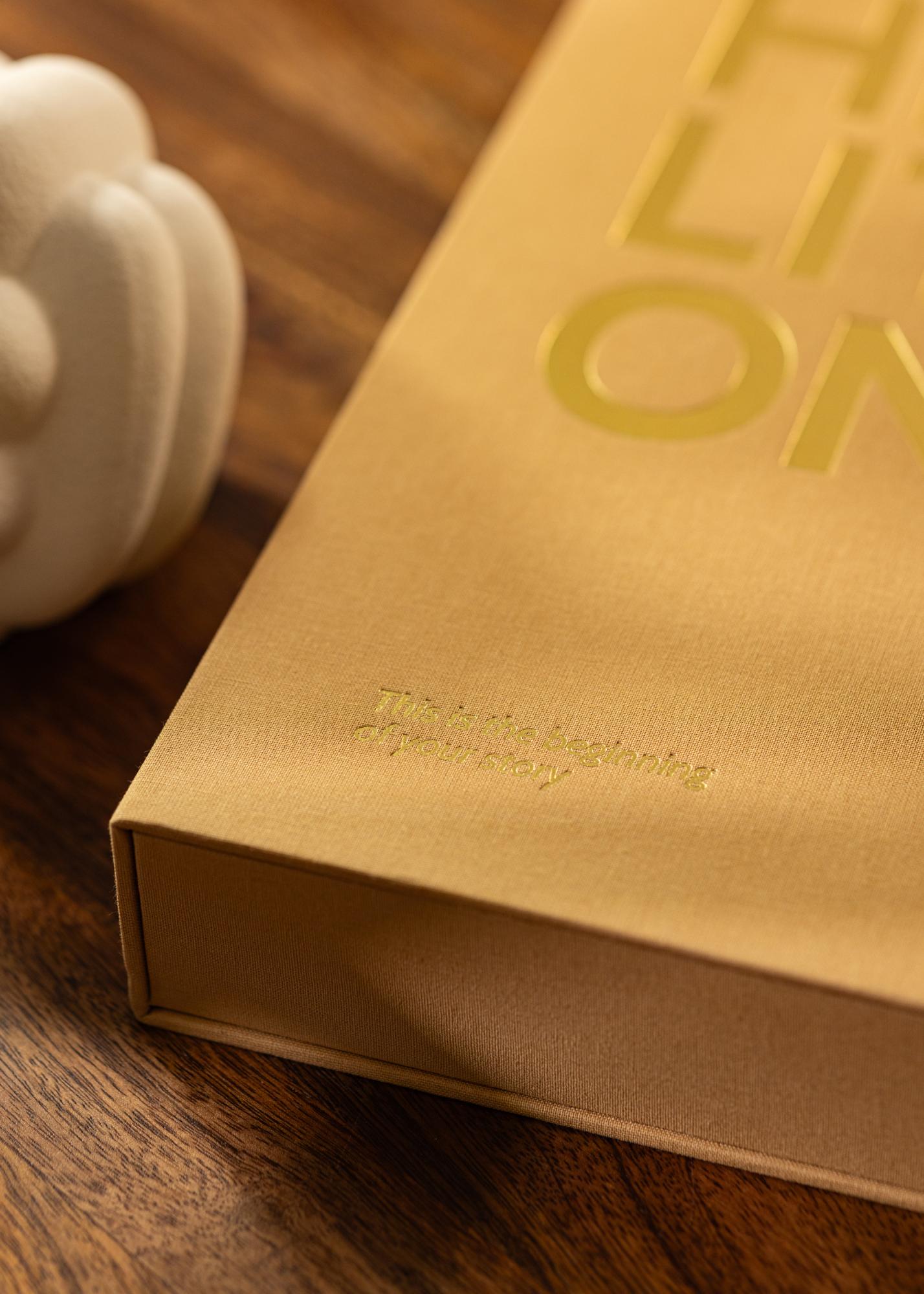 Conserva tus recuerdos más queridos de una manera elegante y guárdalos en un bonito álbum de fotos Coffee Table. Este álbum de fotos tiene el título "HI LITTLE ONE" impreso en letras grandes y doradas en la portada, y un subtítulo que dice "Este es el comienzo de tu historia", lo que hace que este álbum sea perfecto para tus hermosas fotos de los primeros días de tu bebé.
