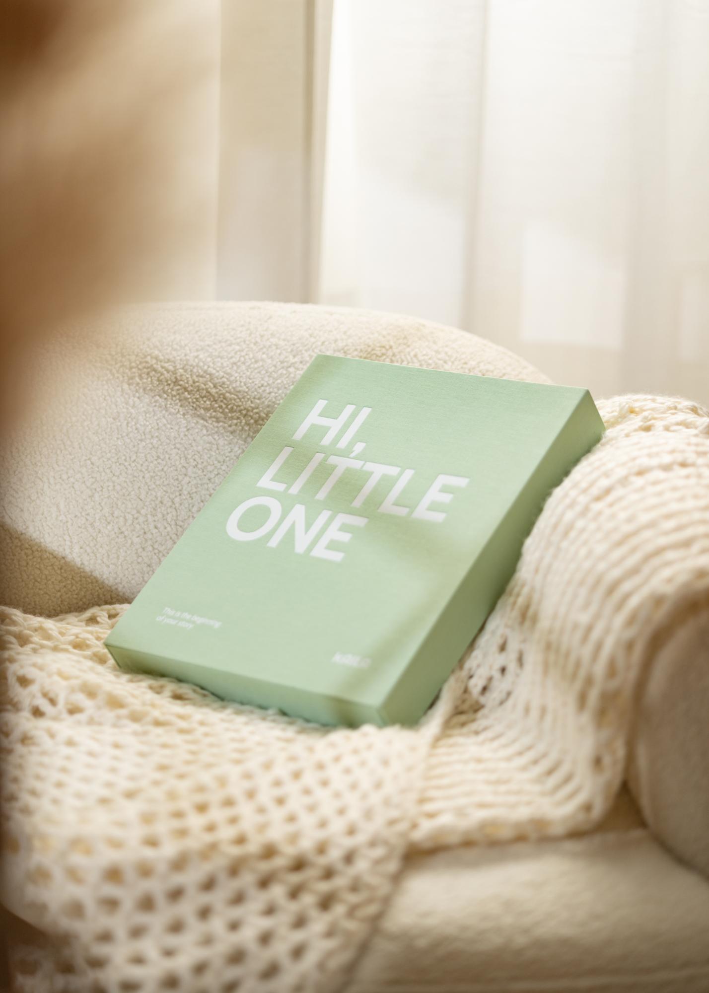 Conserva tus recuerdos más queridos de una manera elegante y guárdalos en un bonito álbum de fotos Coffee Table. Este álbum de fotos tiene el título "HI LITTLE ONE" impreso en letras grandes y blancas en la portada, y un subtítulo que dice "Este es el comienzo de tu historia", lo que hace que este álbum sea perfecto para tus hermosas fotos de los primeros días de tu bebé.