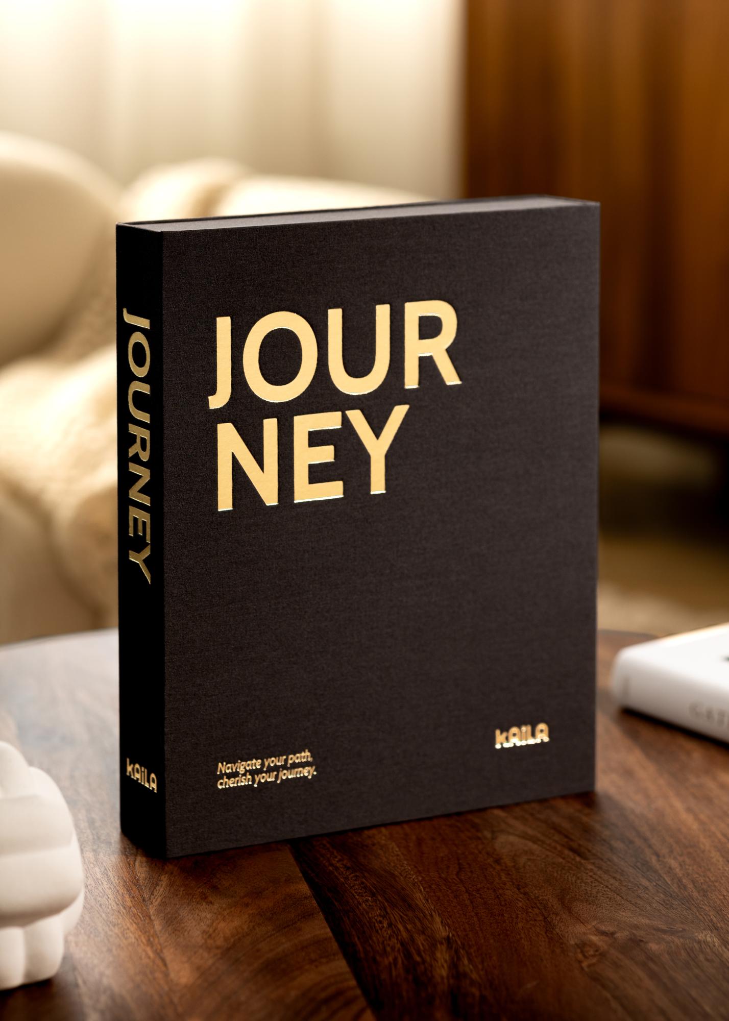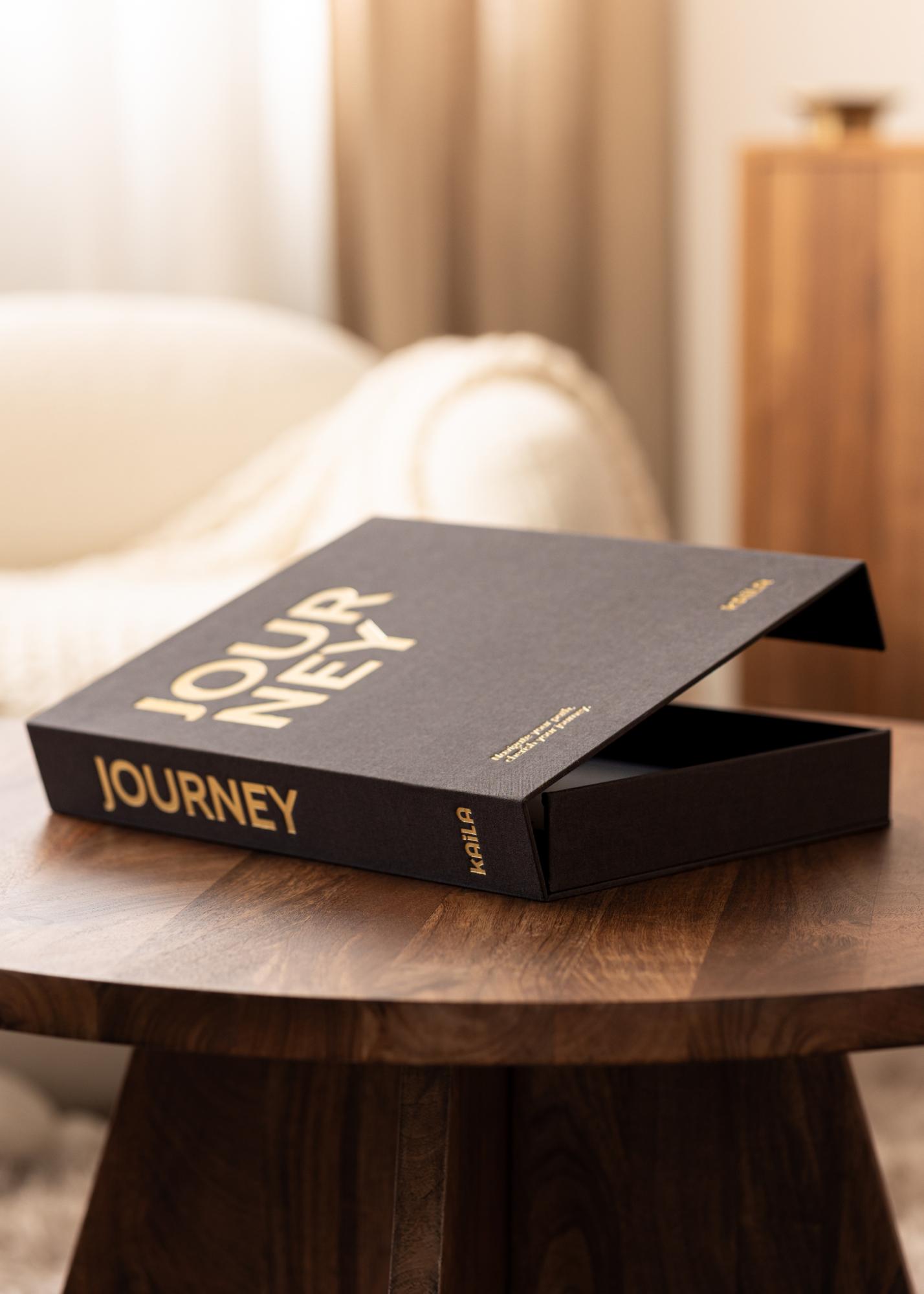 Descubra KAILA JOURNEY Black - un álbum de fotos elegante y estilizado que está diseñado para ser un hermoso detalle decorativo en su hogar. Con sus cubiertas beige y páginas negras, este álbum se convierte en un perfecto Coffee Table Book que puede mostrar con orgullo.
