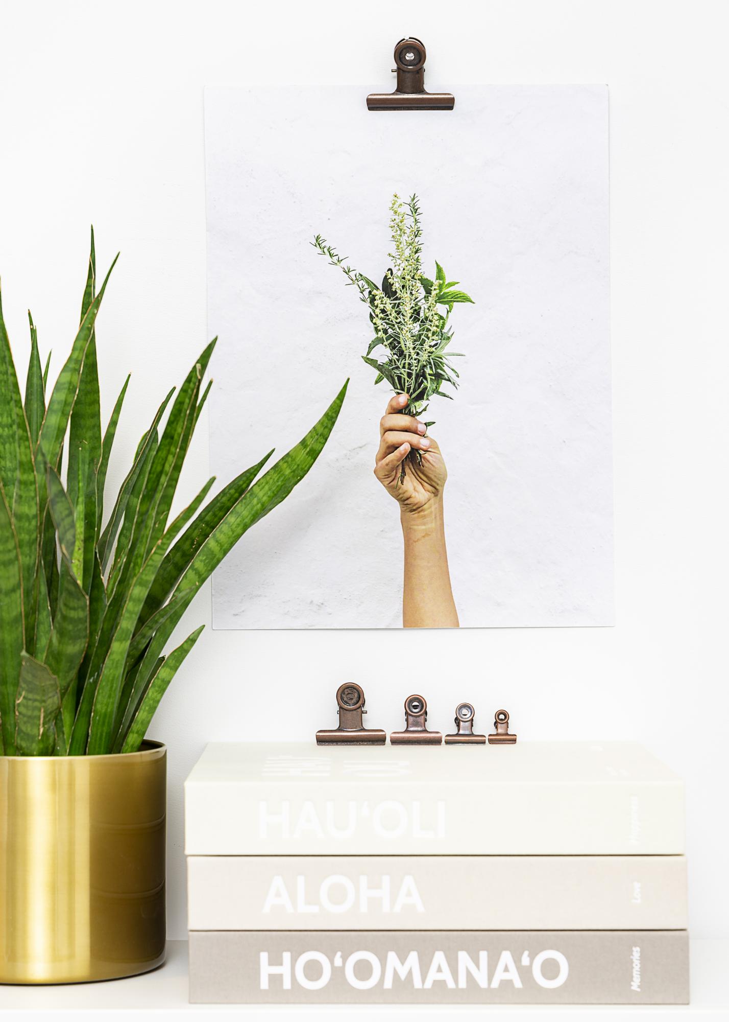 Este es un gancho de metal en estilo rústico con un hermoso latón desgastado que te brinda una suspensión moderna para pósters o láminas. La instalación en tu pared también es muy fácil gracias a los agujeros en la elegante parte superior redonda del clip para pósters. La apertura del clip proporciona un agarre flexible pero fuerte que te permite montar tanto papel fino como pósters con un grosor un poco más generoso, y si quieres colgar un póster grande siempre puedes optar por usar dos clips de metal.